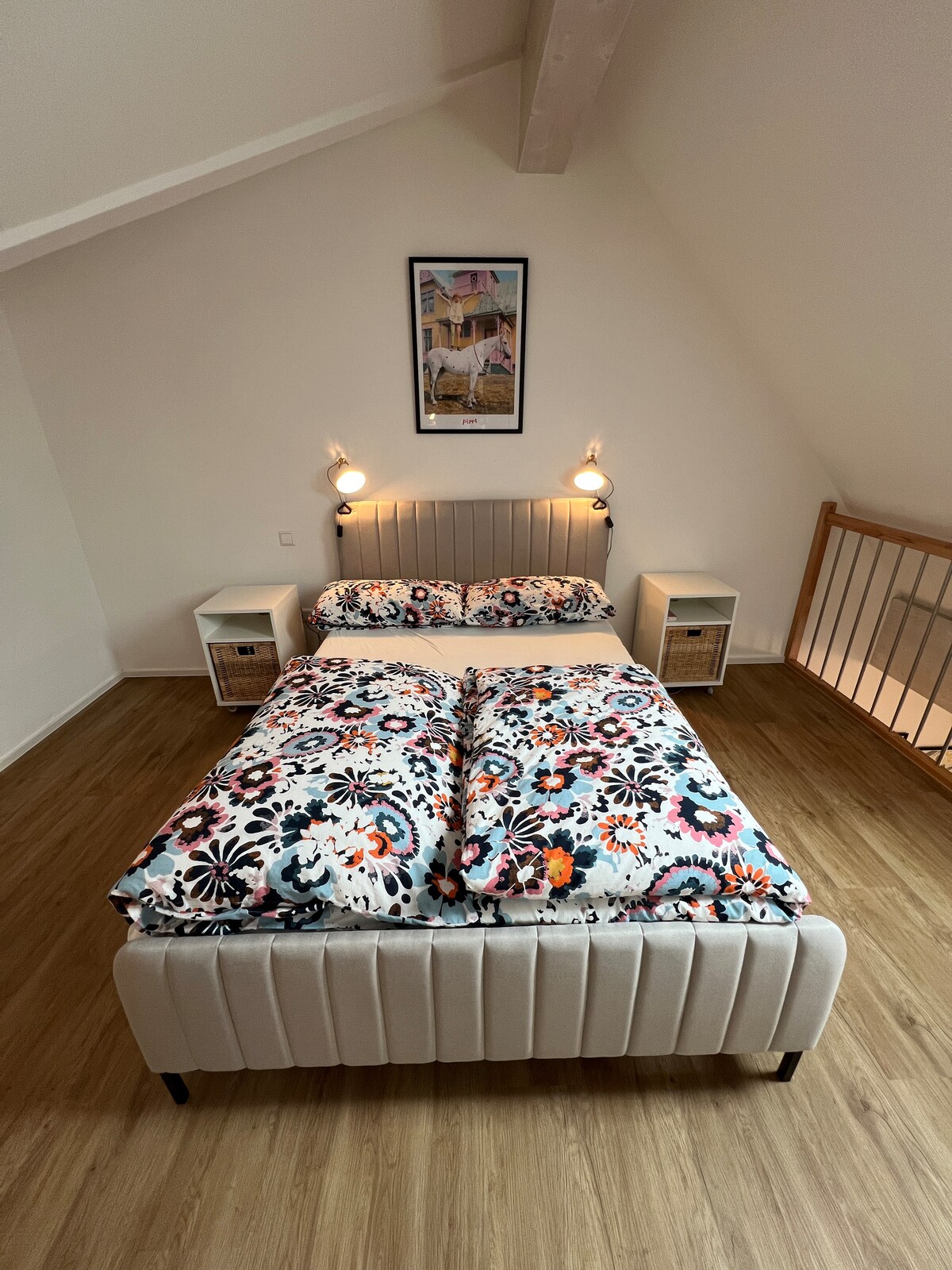 The sleeping area in your apartment is also a real highlight and will be more than just a place to sleep for you. Here you will find a large cozy box spring bed, so you can start the day at Topfit. If you want to stay there with your favorite, that's of course not a problem. Plenty of blankets and pillows are also available.