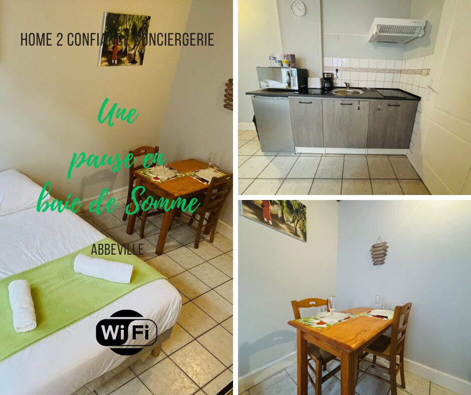 Apartment 60 m2 1 main bedroom with queen size bed, one bedroom with double bed, fitted kitchen with dining room 4 for 4 people, fitted bathroom, washing machine, dryer. very bright, double glazing. Olympic-size swimming pool nearby, park nearby, town center ten minutes' walk away. from the station of abbeville possibility of coming by bus or taxi in front of the station if not twenty minutes on foot.