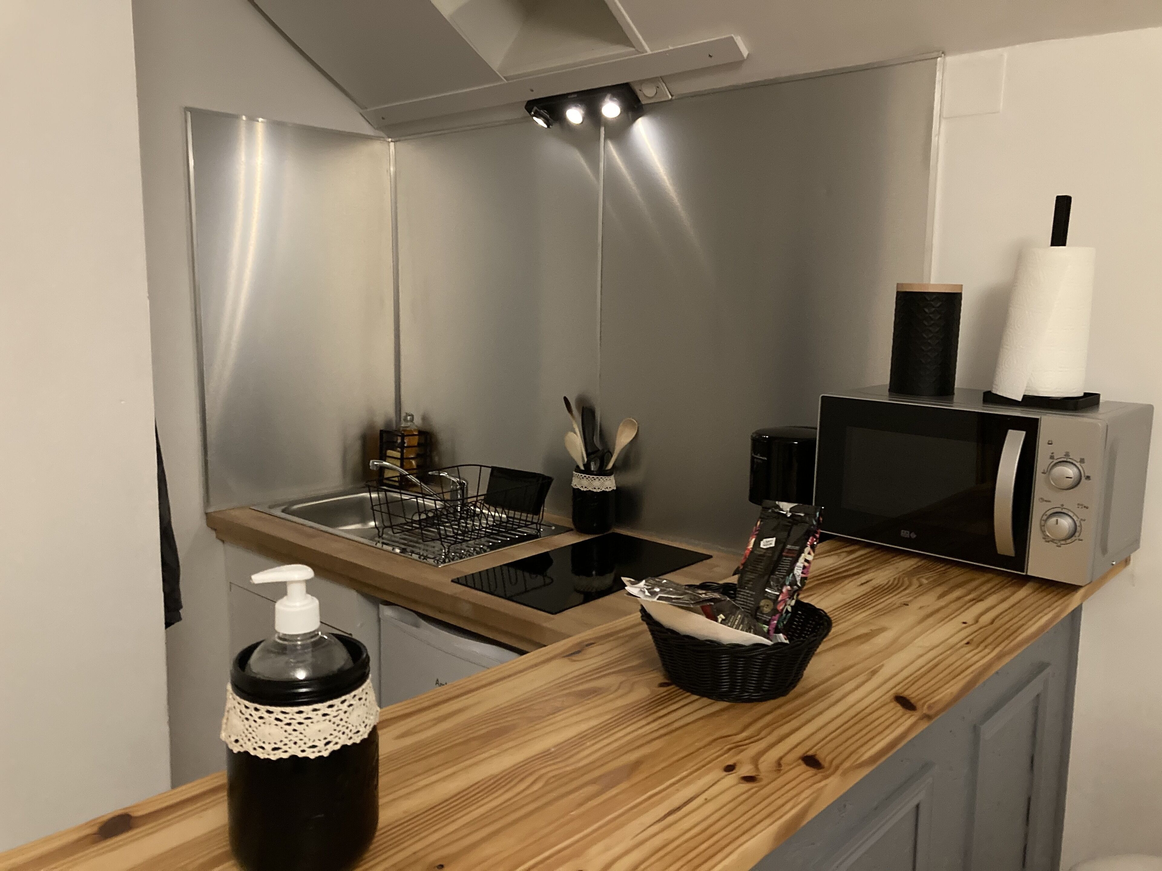 The studio "Le Jardinet" is on the ground floor with a private terrace overlooking the garden. It is fully equipped with free wifi and TV.