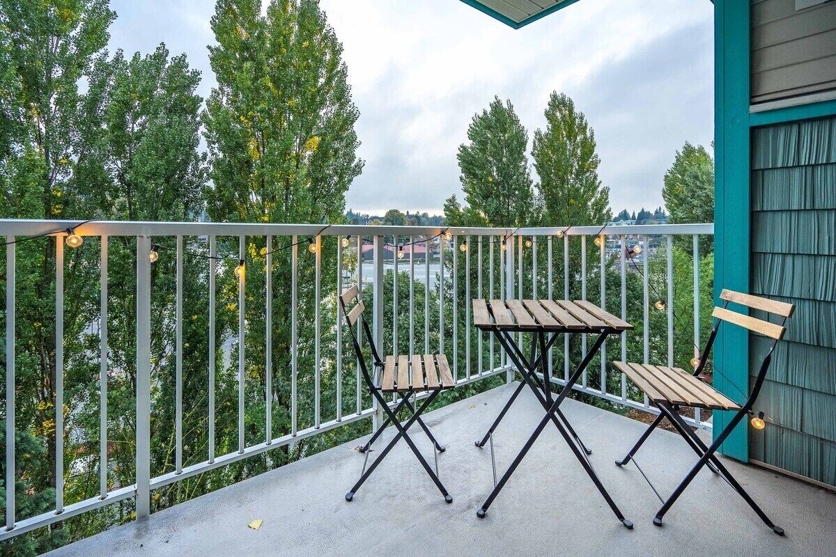 Enjoy a night in on the beautiful balcony with the ambiance of the string lights and a nice glass of wine.