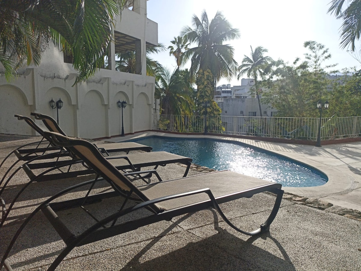 - "We were extremely pleased with our accommodations and highly recommend this property. This was the perfect, private, safe and relaxing stay we were looking for. The apartment is in great shape and very clean (exactly as seen in the photos), also we loved it’s on the ground floor and is conveniently located a few steps from the pool. If you look at the facilities, the pool and grounds are maintained daily, and the property is beautifully landscaped. Staff take pride in keeping it this way. We felt very safe as the complex is gated and guarded 24/7 including patrols. Location wise it’s on the same road as the Acapulco Airport and it is a short drive from a lot of stores and great restaurants. The closest beach and Walmart are a 10-minute walk and public transportation (colectivo) passes right out front. Also, it has the best internet speeds I’ve ever experienced in Mexico. The air conditioning in every room was strong and has very comfortable beds. Overall, it was a great experience and Victor is a great host, he was always very kind apart from having had great details with us. We loved this place so much that we will probably come back someday soon."