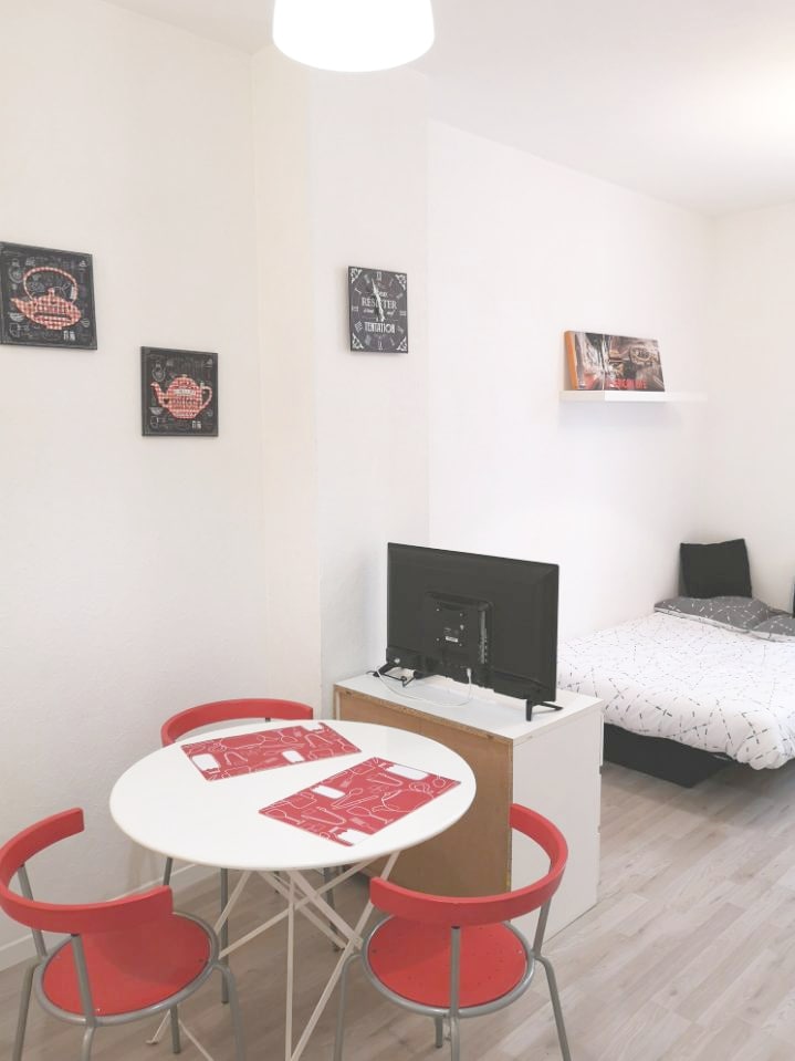 Spacious studio completely refurbished. Located in a hypercenter from Agen to Jasmin square, close to shops and nightlife but on a very quiet street.