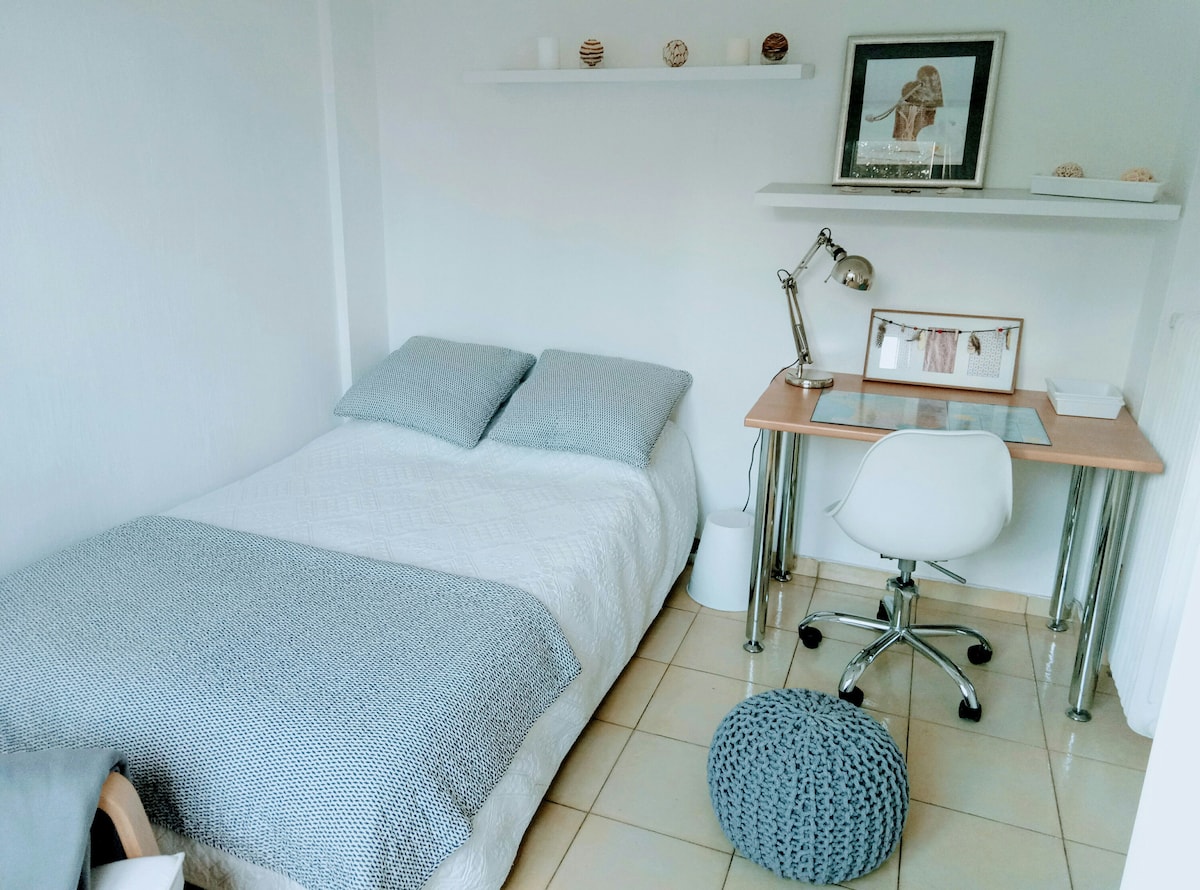 I offer a 25 m² private room in my apartment which is located in a small family residence on the ground floor in the village of Luynes. All shops nearby. The quiet apartment is composed of a terrace and a garden. The room has direct access to the garden. There is a parking space at your disposal and also a bus stop at the bottom of the residence that connects Luynes to Aix-en-Provence or Marseille.
