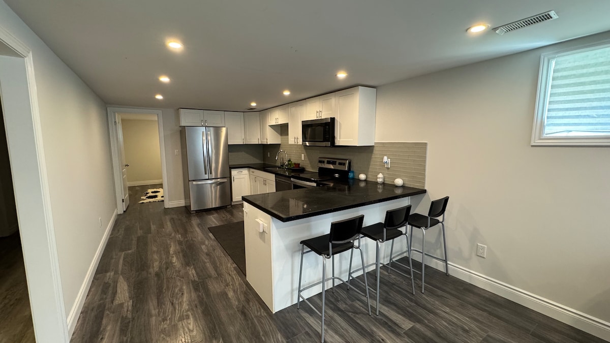Gorgeous newly renovated lower unit with a separate entrance. Enjoy this entire basement suite to yourself! Great workspace, family getaway, or relaxing place fora change of scenery. 1 parking spot on driveway. High speed Wi-Fi. Self check in with lockbox on property.
