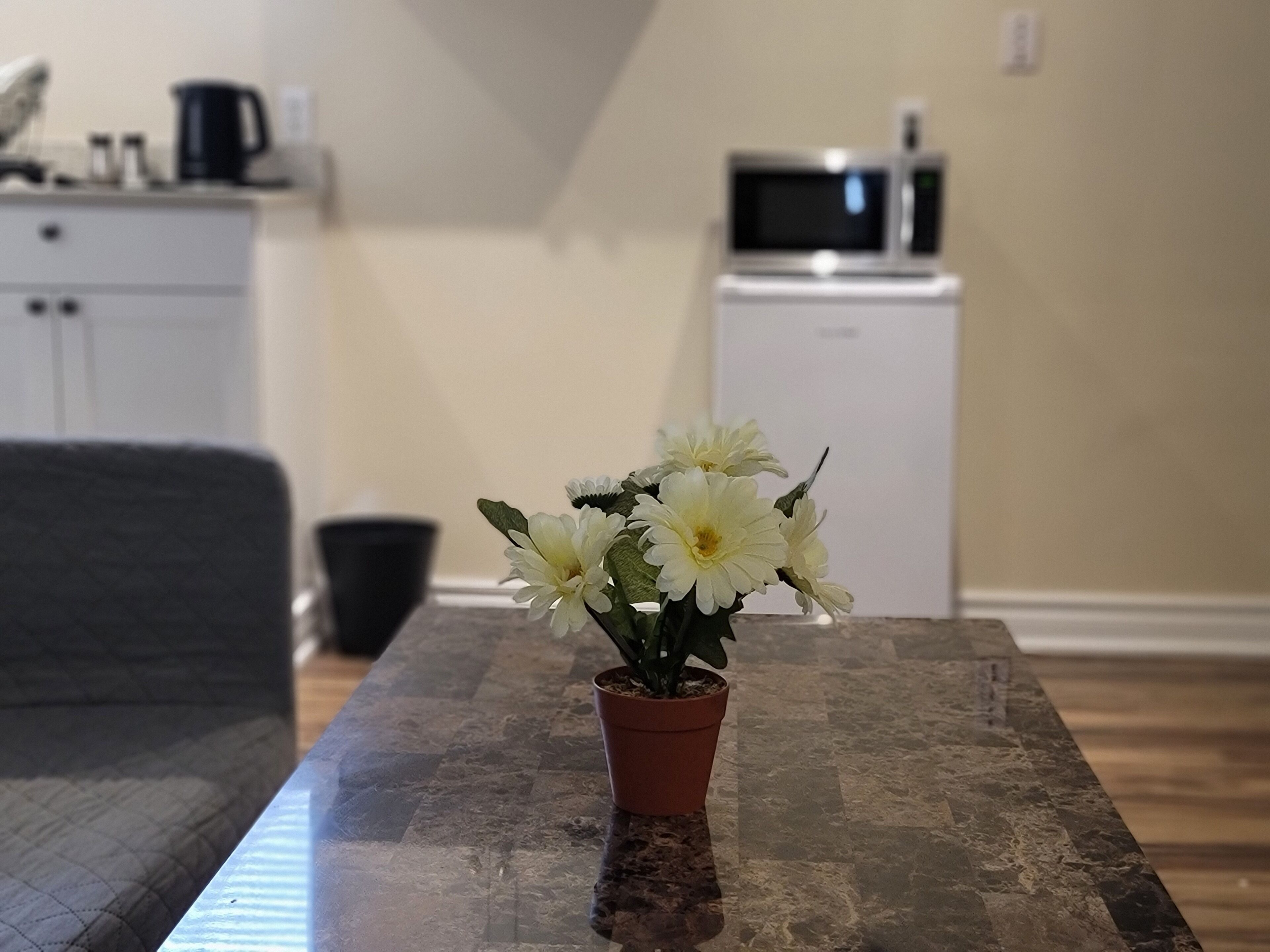 Perfect retreat for families, professionals, or small groups exploring the city. Fully Equipped Kitchen with microwave, LG fridge, portable cooktop, Keurig, toaster and cookware.