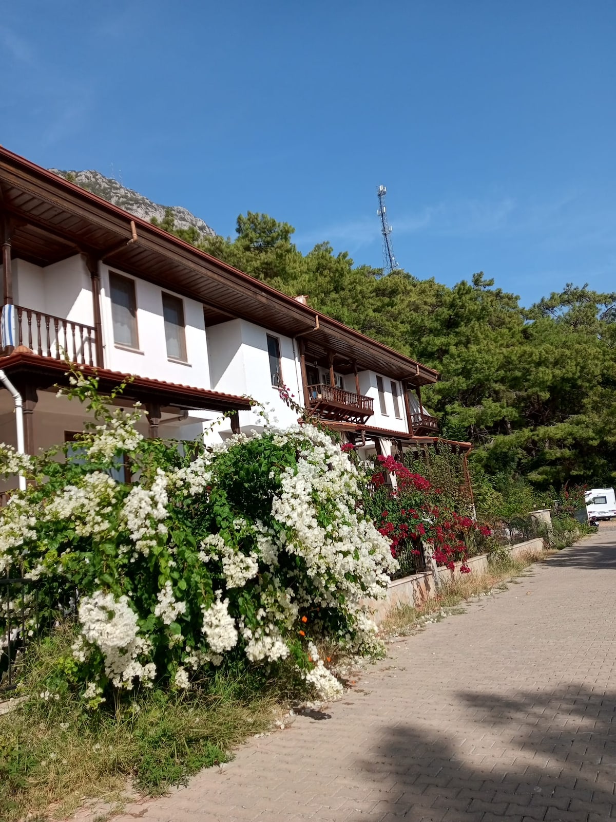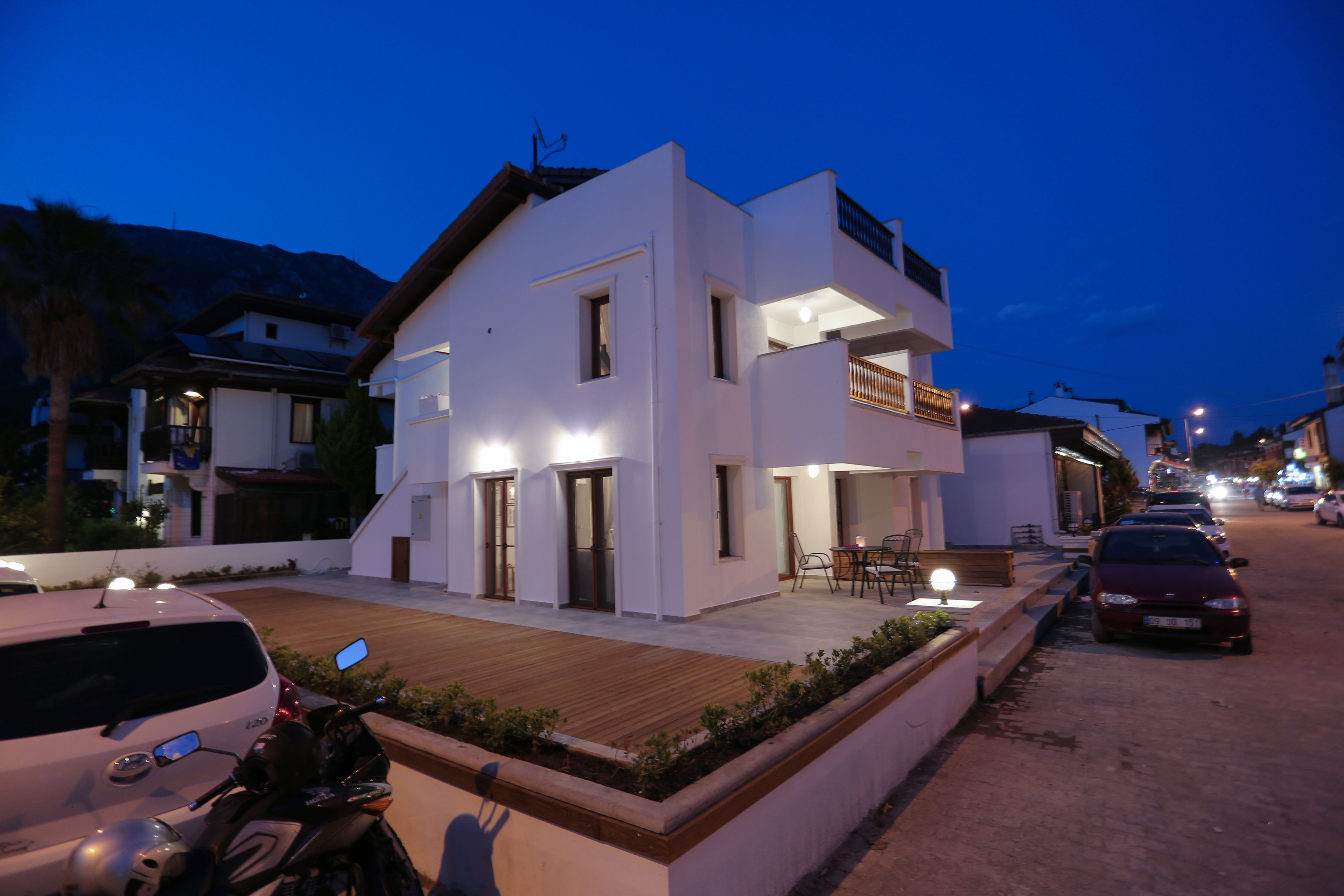 Our house is 20 meters from the Blue Flag Akyaka Beach. It is on the entrance floor of the villa pictured. You can spend time with your loved ones on the large porch and enjoy Akyaka while sipping your coffee.