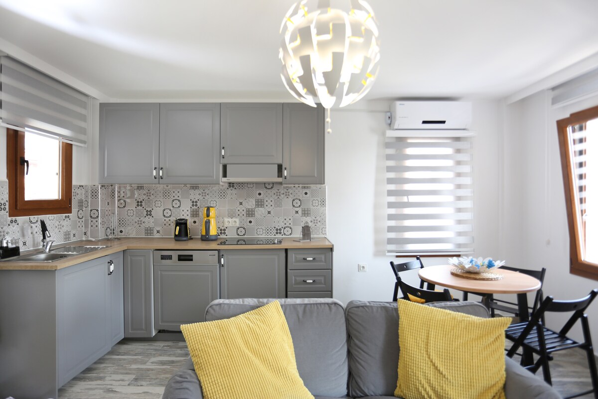 Alpine suites Mandalin are located right in the heart of Akyaka. The chain is within walking distance of markets , cafes , pharmacies and bars. We look forward to welcoming you in our apartments, which were redecorated in 2022 in minimalist bohemian style...
