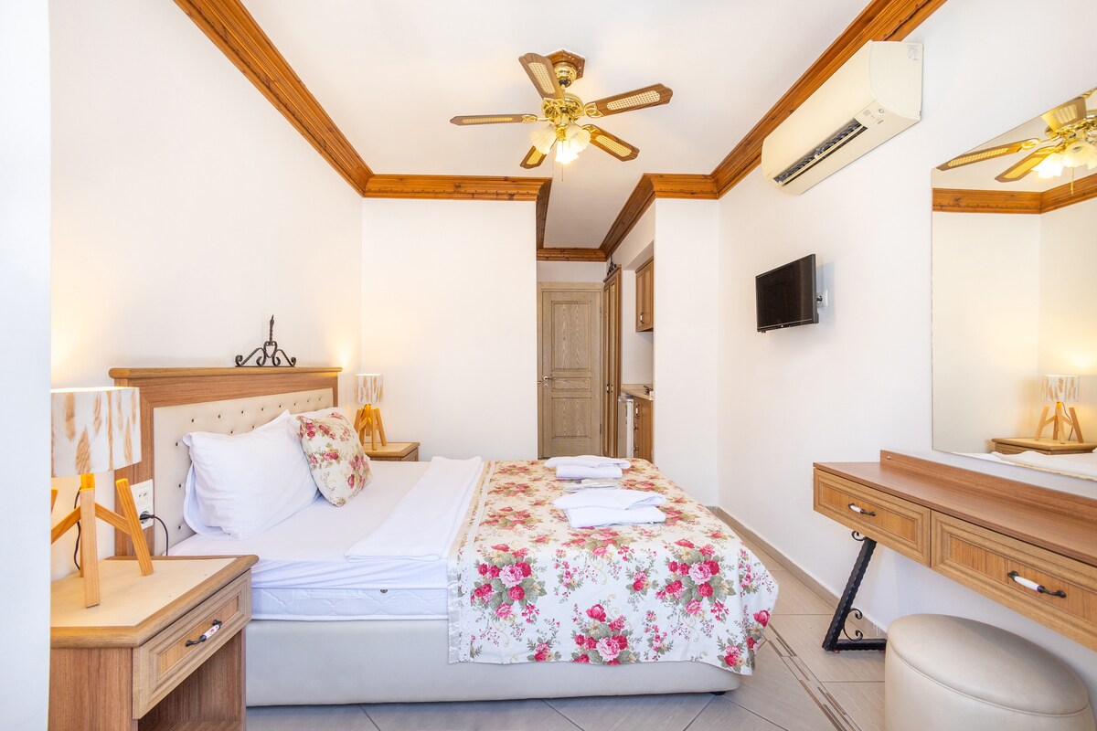 Located in the center of Akyaka, away from the noise of the center, Esen Apart, our business's Begonvil type apartments can accommodate 4 people. All of our apartments have kitchen utensils, air conditioning, TV, wi-fi as standard. There is one double,two single beds.