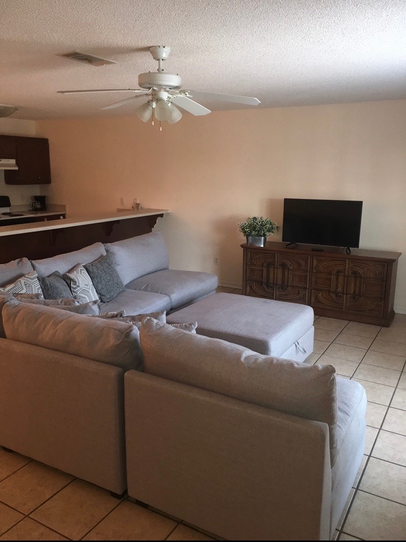 This home is clean and sanitized. It consists of 2 bedrooms and 1 bathroom. It also includes a sofa bed. It is half of a duplex.