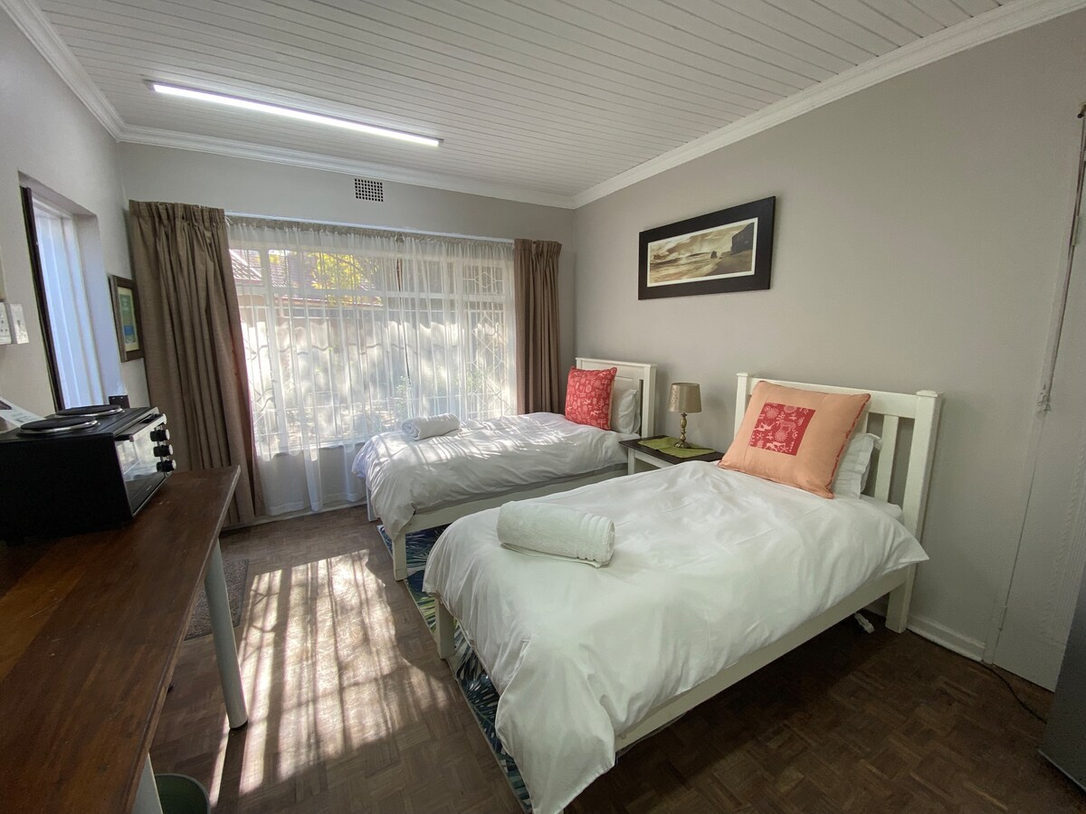 Jimmy's Cottage is the 5th cottage on the property. The room is for your use only with an ensuite bathroom and small patio and is not shared with other guests. Basic cooking facilities include a two plate stove with small oven for warming up ready bought meals as well as a fridge in the room. There is also a single plate gas stove for boiling water during loadshedding. Loadshedding light is provided. The bathroom is private with a shower and toilet. Cutlery and crockery are all provided as well as basic toiletries.