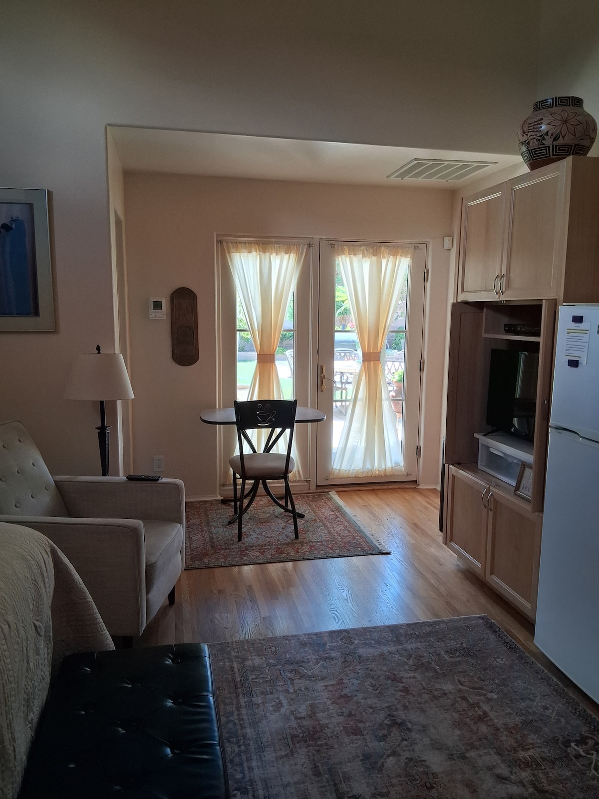 Separate private 1 Room Casita. 'Casita' means small house in Spanish. This casita is a detached little home away from home about the size of an average hotel room. Casita has a queen sized bed, mini fridge, microwave, coffee maker, 32' TV with satellite, toaster, electric hot plate (No Stove), 3/4 bathroom, washer/dryer, and WIFI internet access. Pack-n-play available if needed for those travelling with infant or toddler.