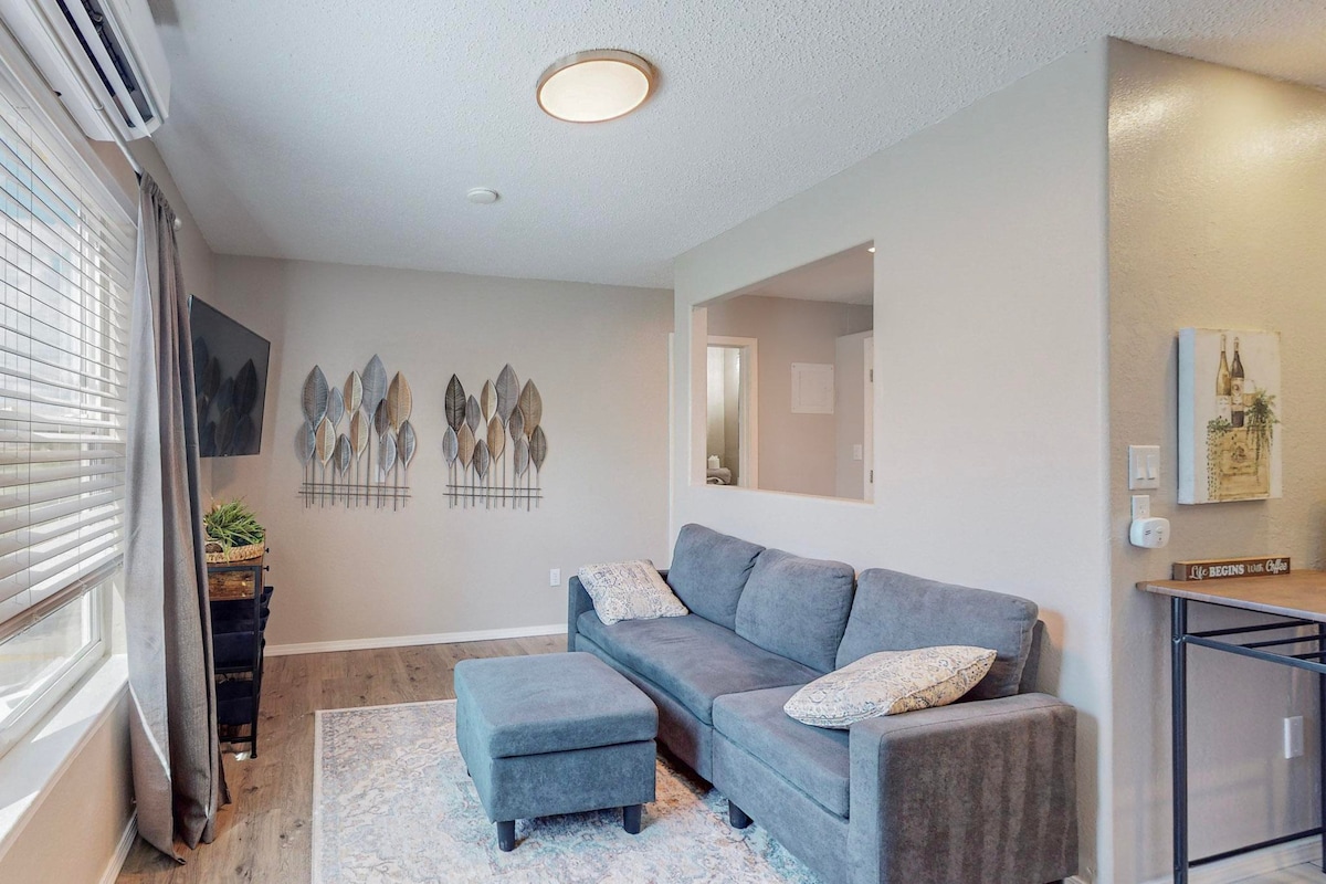 Enjoy this absolutely amazing two-bedroom, two bath apartment that is conveniently located right at the foothills of the Sandia Mountains. Walking distance from the best hiking, biking, running trails, brewery, and restaurants Albuquerque has to offer. If you love serenity, the outdoors and beautiful views, this apartment is perfect for you! This cozy apartment was thoughtfully updated and is perfect for the vacationing family, traveling retirees, Balloon Fiesta visitors, or professionals.