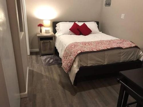 The luxurious master bedroom is equipped with a queen-sized high-end comfortable mattress, high quality bed linens, and comforters for a blissful nights sleep. A small reading library is provided. More than enough closet space and luggage racks are provided for your convenience.