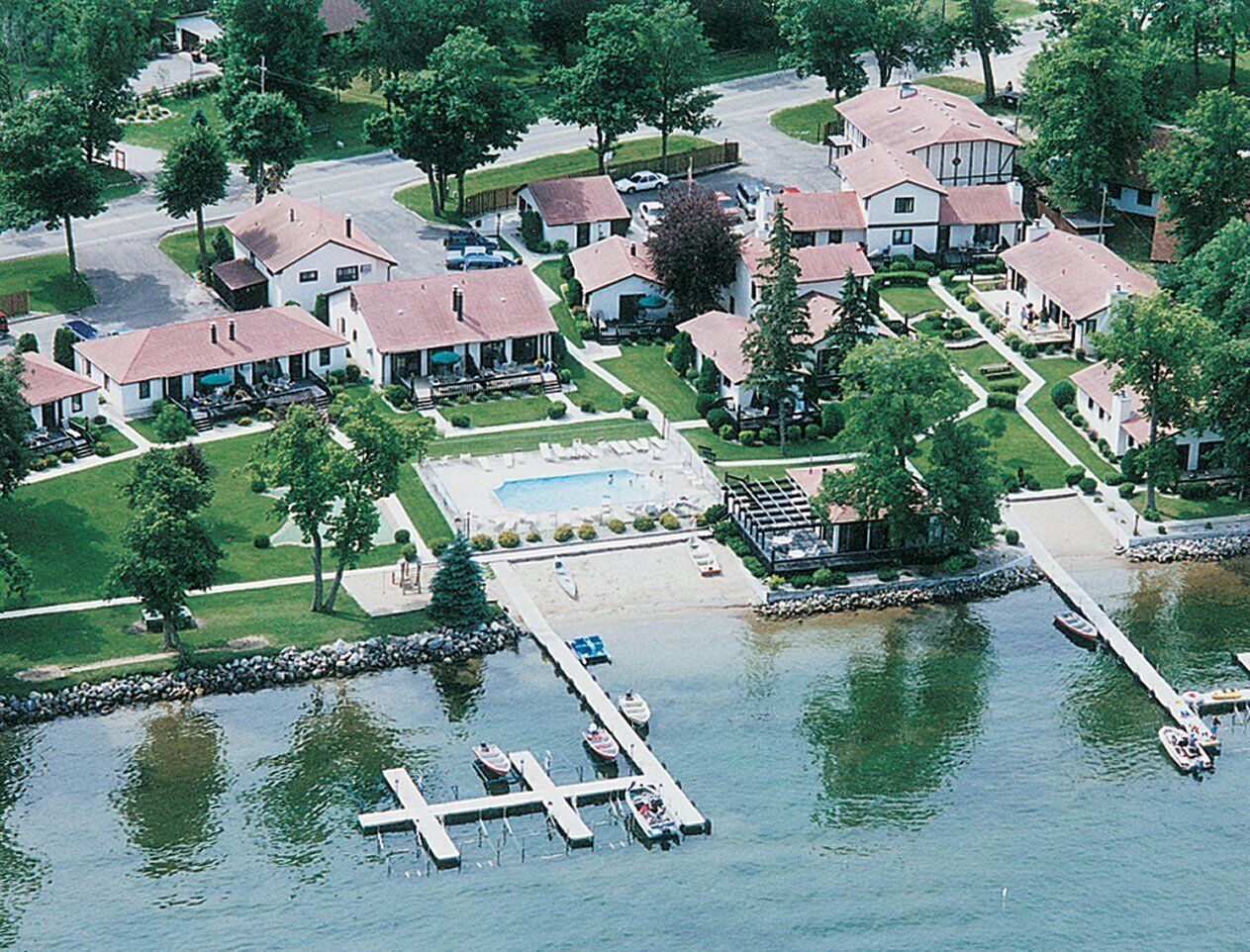 Cozy and quiet, the intimate Lake Carlos Villas resort is located on the southwest shore of Lake Carlos. It provides an ideal vacation for those seeking serene lakeside relaxation, or the fun activities of nearby Alexandria. Guests can enjoy a lakefront beach, the resort's own 14-foot fishing boat, an all-season indoor/outdoor pool, a hot tub, a game room, and lakeside walking and biking paths. Kids can romp in the playground, while adults can enjoy the adults-only clubroom and library. There are laundry facilities on-site. The villas are close to shopping, grocery stores, restaurants, and entertainment. Cook up your own catch of the day on a lakeside grill, spend the evening relaxing by a fire, and enjoy the beautiful natural surroundings of this unique retreat.
