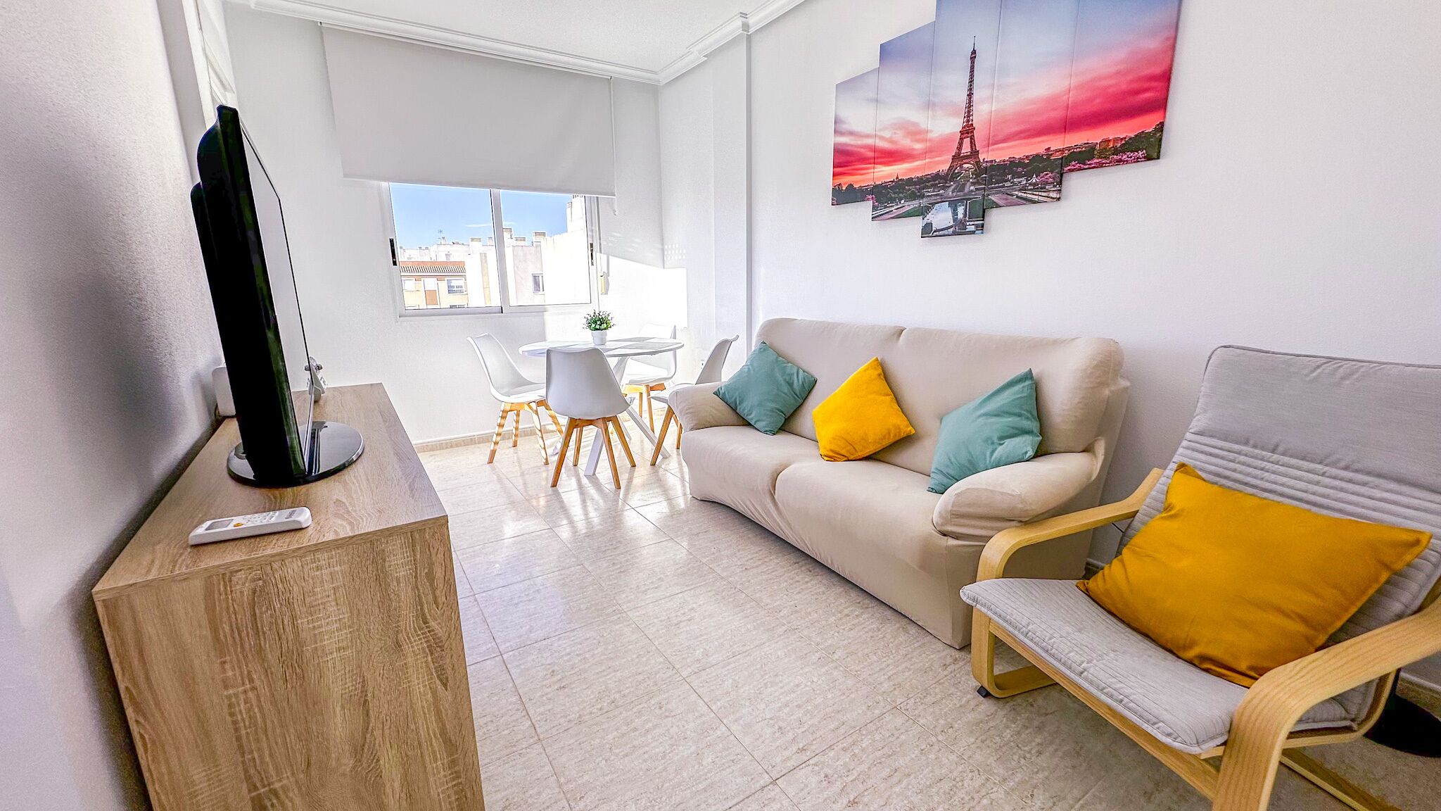 Located in Almoradí, Costa Blanca Sur, this 70 m² apartment welcomes up to 4 guests with 2 bedrooms and 2 bathrooms. The first bedroom has 2 single beds, the second bedroom features 1 double bed. You will find a fully equipped private kitchen with dishwasher, air conditioning in the living room and master bedroom, heating, fan, smart TV with DVD player, HDMI connection, cable TV with 100 Spanish channels, Prime Video, and a washing machine.