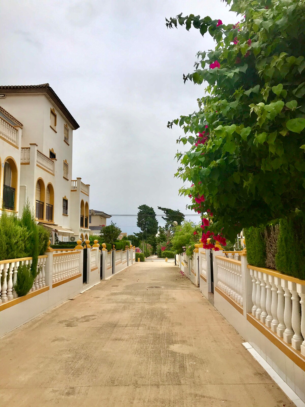 A car is essential. There is easy parking outside or near the apartment. There are well maintained gardens and the two communal swimming pools. The access to the pool is round the side of the block, very easy.