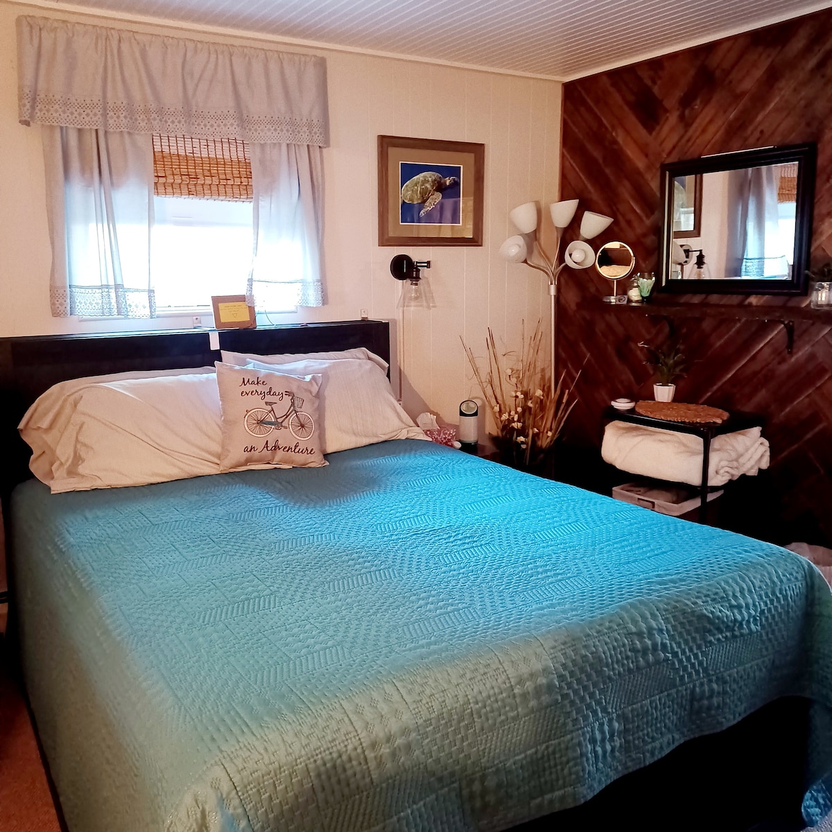 - Cozy Bedroom: Enjoy a restful night's sleep on a queen-sized bed with linens and ample storage.