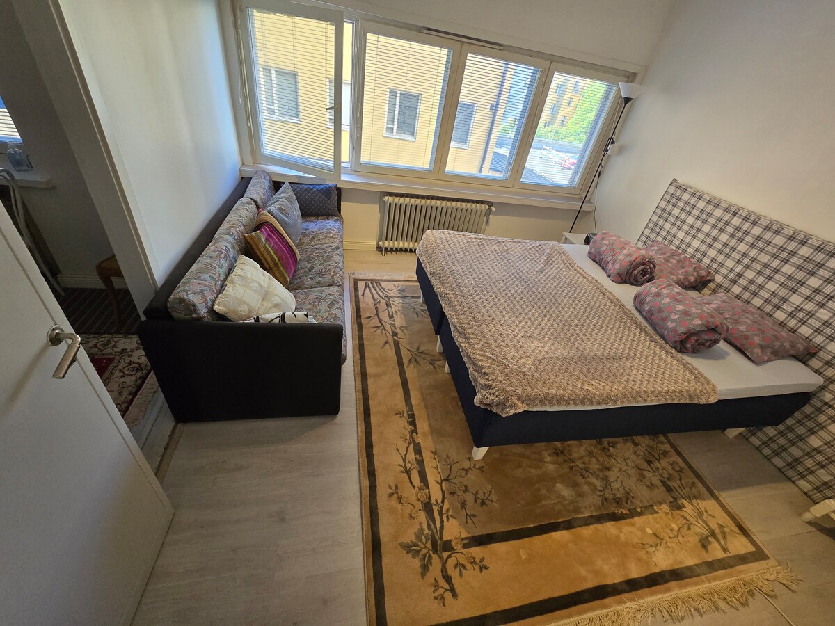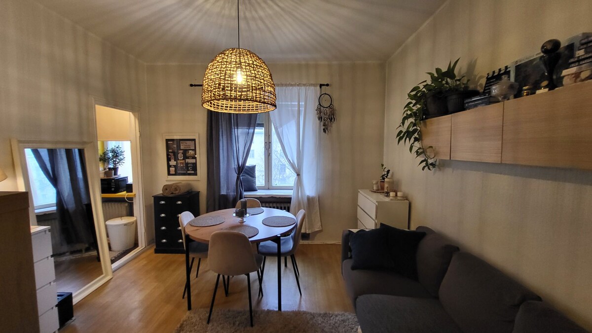 Beautiful studio in the middle of Kallio! The location is very central. The subway, buses, and tram run right from the door, but the top floor facing the courtyard keeps the apartment quiet. In the neighborhood, you'll find dozens of restaurants and domes, grocery stores, and a gym. The apartment includes a dishwasher and a drying washing machine. Please note that the apartment has fewer furniture and belongings than in the photos. Floor 5/5, no elevator.