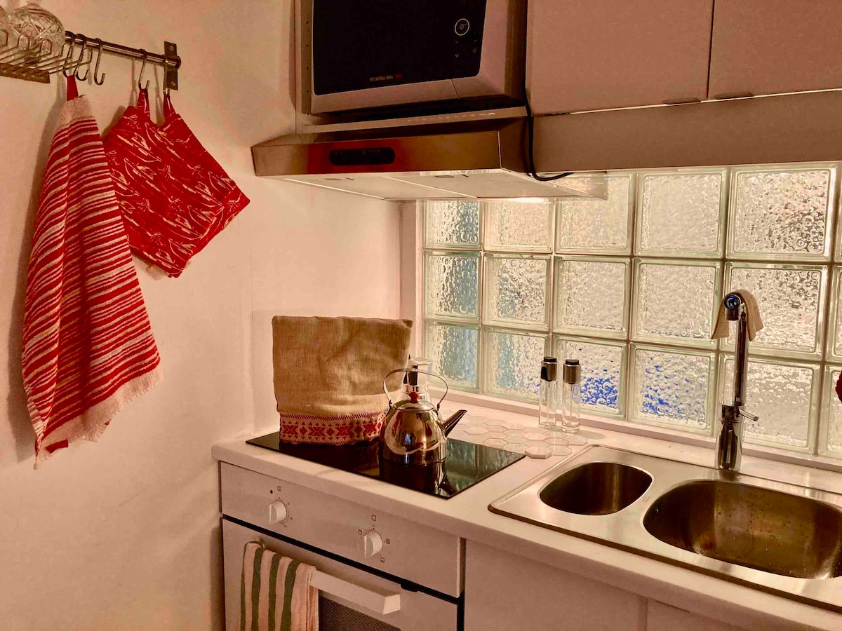 Fully stocked kitchen with all the necessary utensils and supplies for cooking. In this kitchen, you can easily prepare breakfast or dinner on your own.