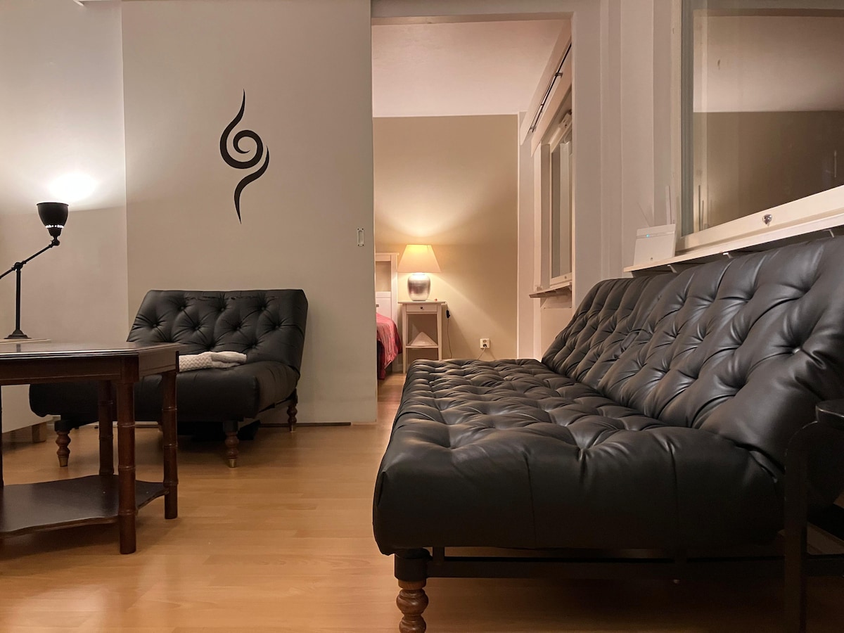 Discover Helsinki and enjoy this charming studio apartment nestled in Kallio, close to eateries and public transport. Next to Sörnäinen metro station, with a direct bus to Helsinki-Vantaa Airport (34 min). The studio is modern, newly renovated. We defined it is for 2 guests but there you can have extra matrass for extra guest.