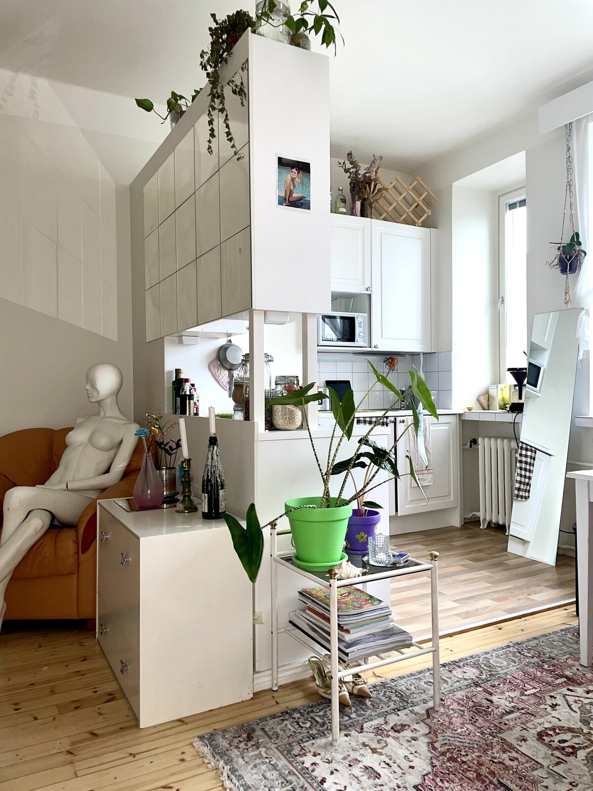 My colourful studio flat, located in the buzzing Kallio district of Helsinki, is overlooking a park and an ice skating ring.