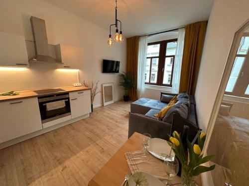 The lovingly furnished unit impresses with beautiful design elements, vinyl flooring, washing machine, free Wi-Fi, smart TV and a fully equipped fitted kitchen.