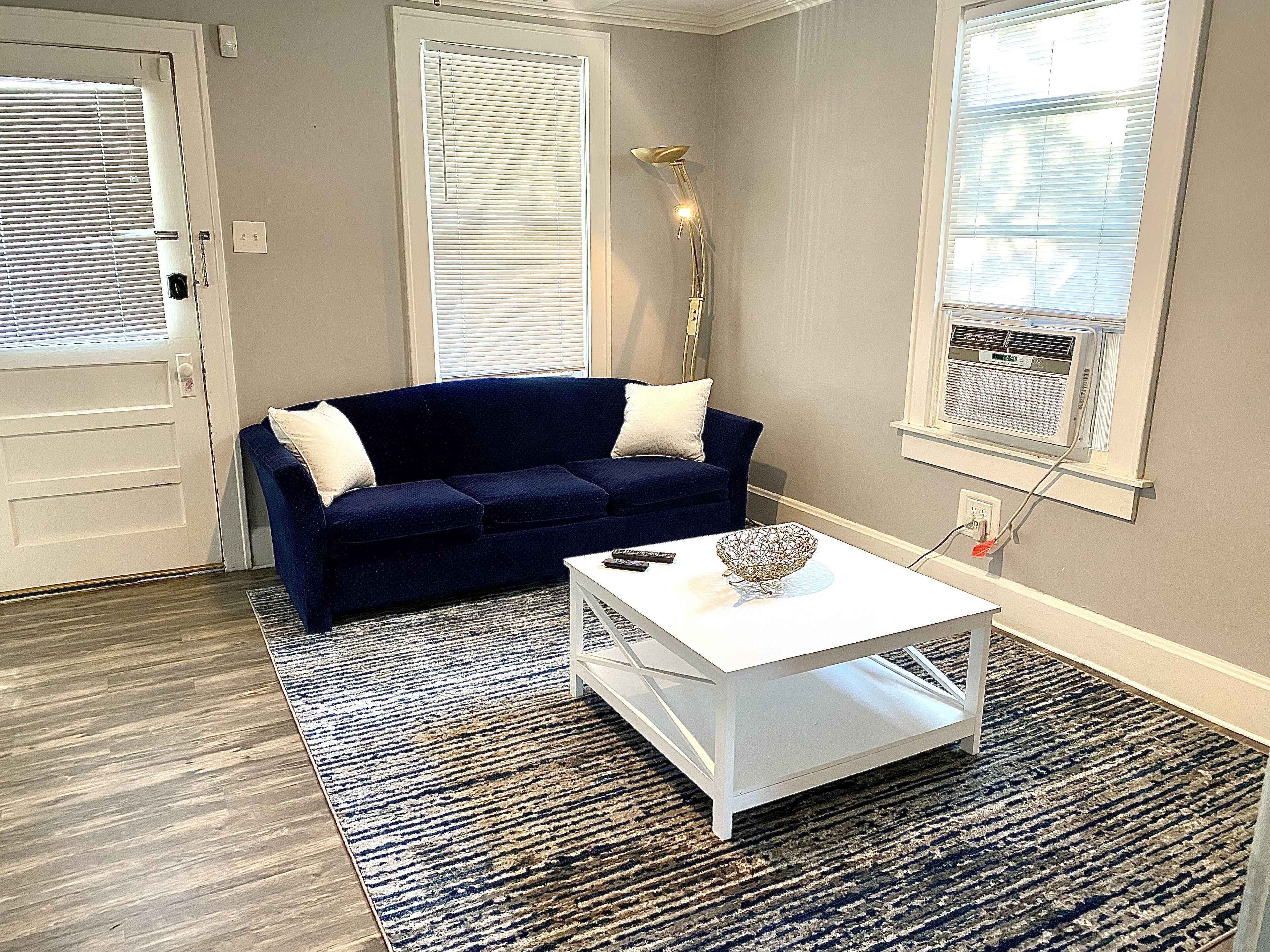 The front entrance is a key code lock, Lighted porch, very quiet and safe neighborhood. Home is a beautifully updated 1 bed 1 bath apartment. The property was recently renovated. Full-size bed in bedroom and very comfortable sofa with pull-out couch) Has all the utensils, pots, and pans needed to make a great home-cooked meal. You will have the whole apartment to yourself. Also has washer and dryer in home.