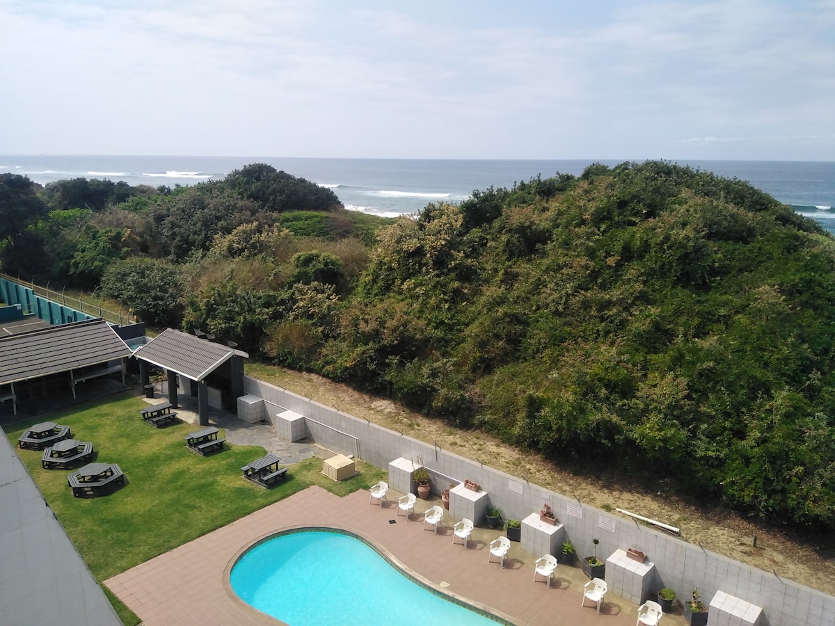We offer a peaceful stay and safe parking, with a sea from the huge deck directly infront of the apartment, There is a pool and braai area in the complex. Have fun in the sun on a almost private beach. Enjoy beautiful sunsets overlooking the ocean