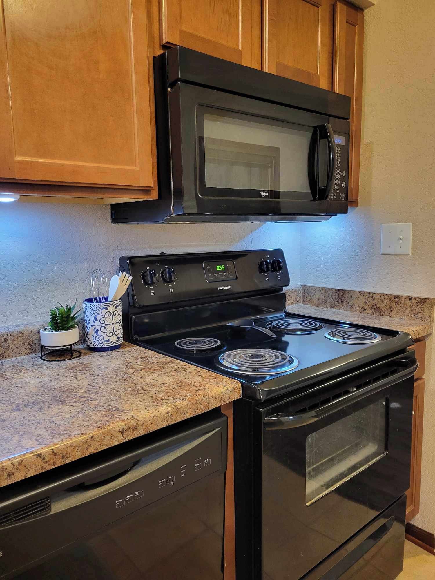 🍽️ Full Kitchen: fully stocked, Keurig and drip coffee maker, full stove with oven, air fryer, electric kettle.