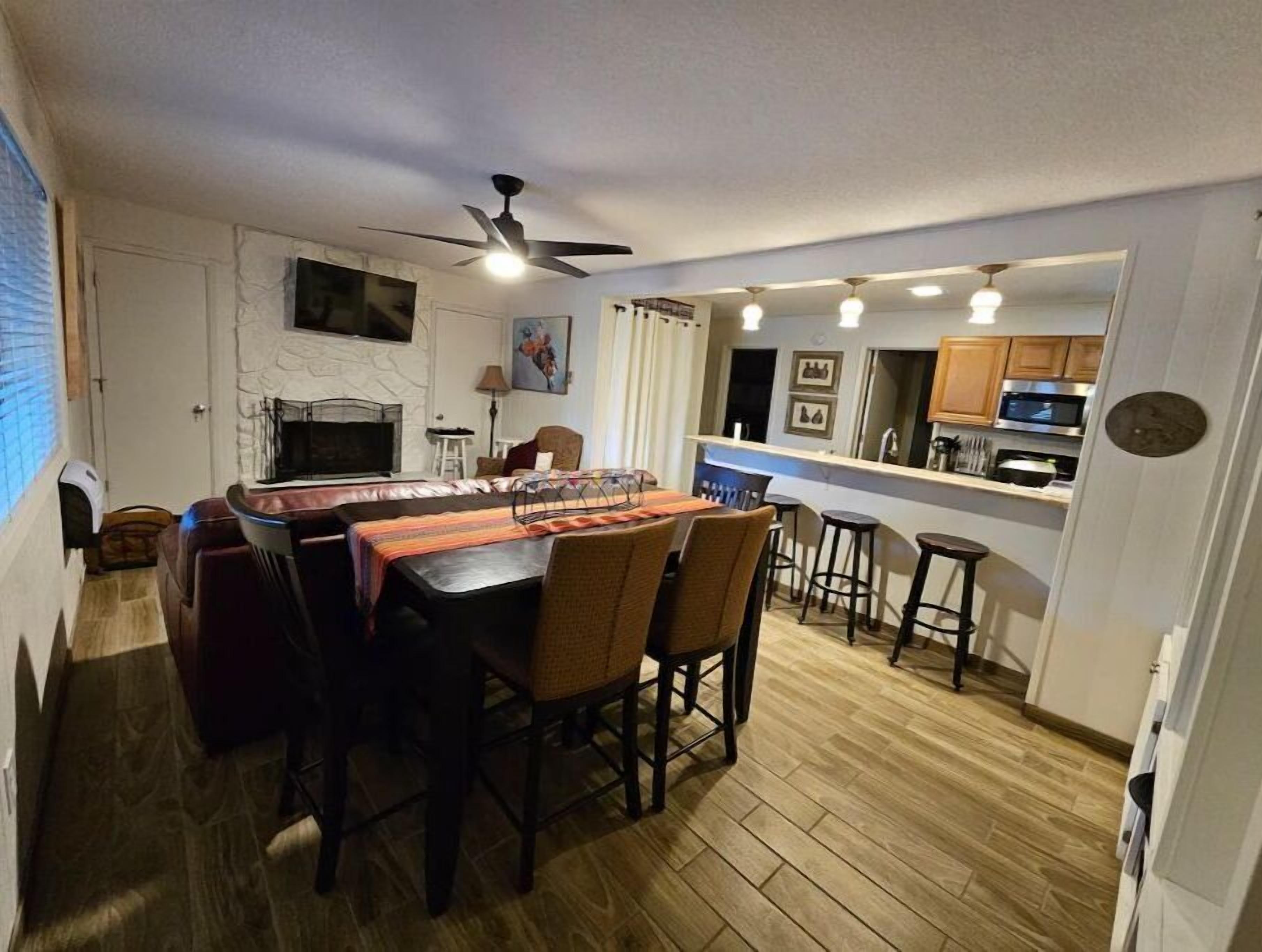 The apartment has access to a restaurant. With direct access to a balcony, the apartment consists of 3 bedrooms. Offering a terrace with mountain views, this apartment also has a satellite TV, a well-equipped kitchen with a dishwasher, an oven, and a microwave, as well as 2 bathrooms. The accommodation has a fireplace. Guests at Timbers Townhouse 1 will be able to enjoy activities in and around Angel Fire, like skiing and cycling. Taos Regional Airport is 32 miles away.