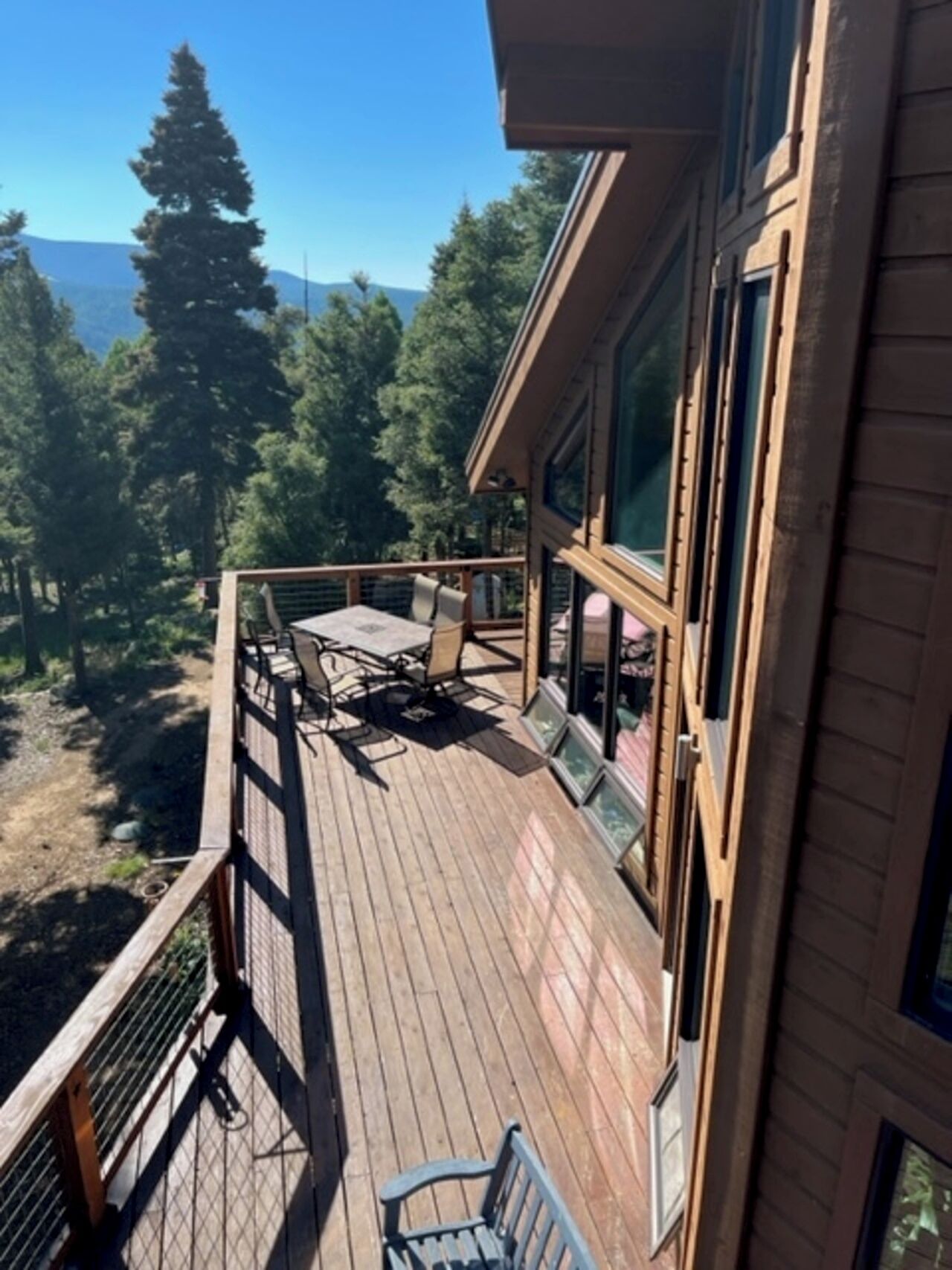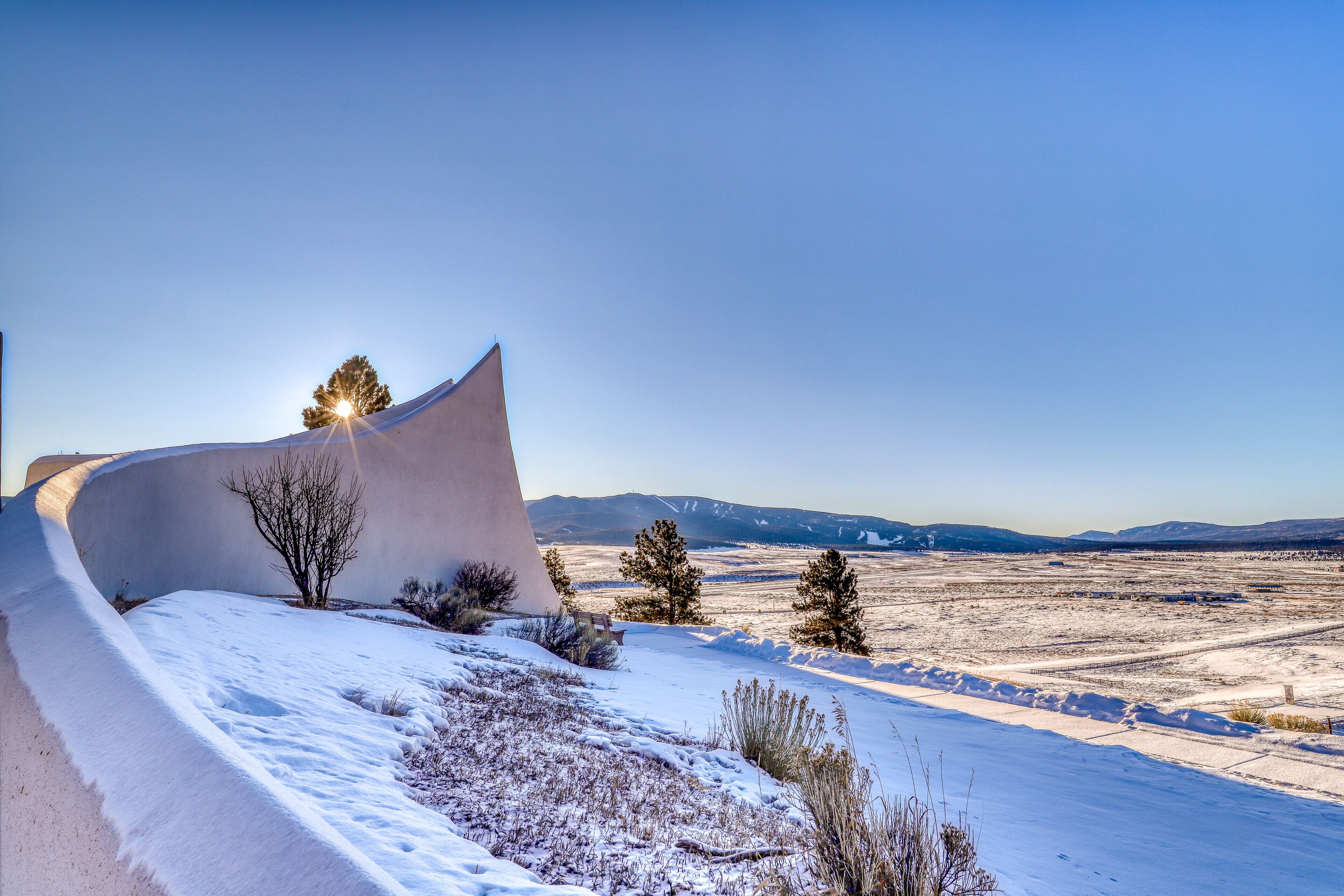 We offer a spacious home located on six acres with a fireplace and open concept kitchen, dining room, living room so that everyone can enjoy their time together. We offer a master bedroom with a queen bed, a loft with two full Murphy beds, and a room with a queen Murphy bed. The ski slopes are just minutes away. The views of Moreno Valley and the Carson National Forest are incomparable. Our home is located at 9200' overlooking the valley. This unique property is nestled in the Sange de Cristo Mountains and offers stunning views, comfortable accommodations and great spaces to kick back after a day skiing, snowboarding, horseback riding or just relaxing by the fire.