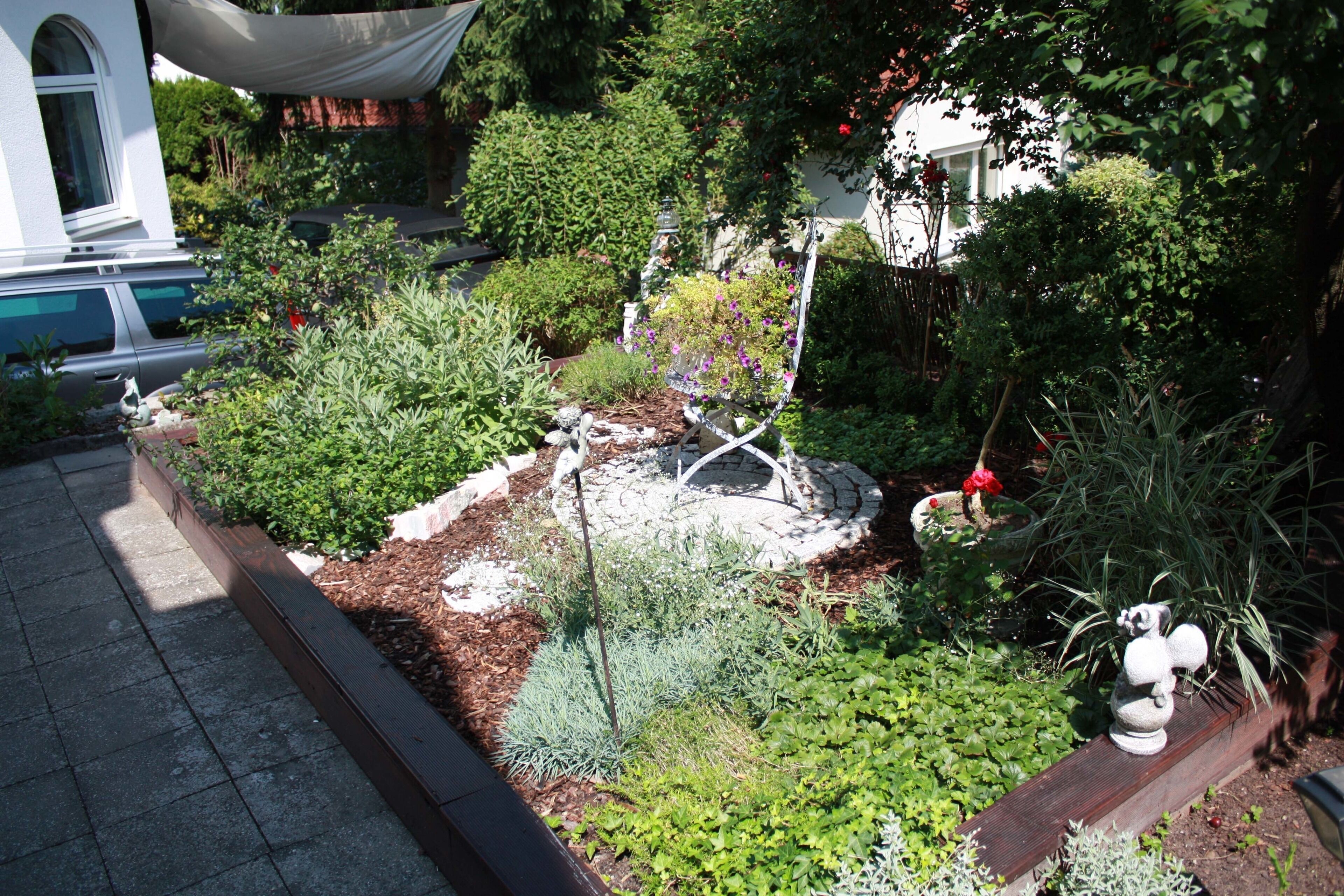 The parking space is in the left rear area next to the brown wooden garden fence. Here you can also park two cars in a row.