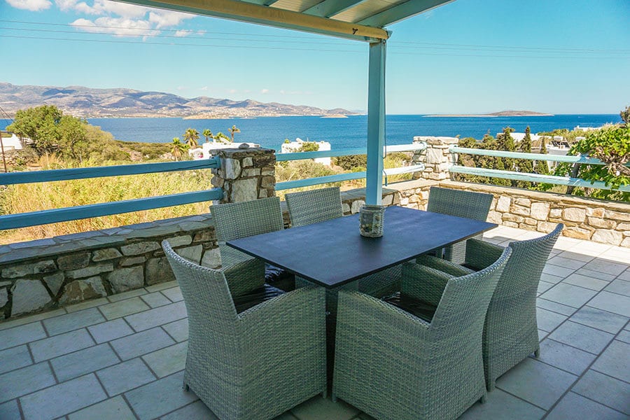 On the verandas you can enjoy your breakfast or dinner, overlooking Paros or the sunset.