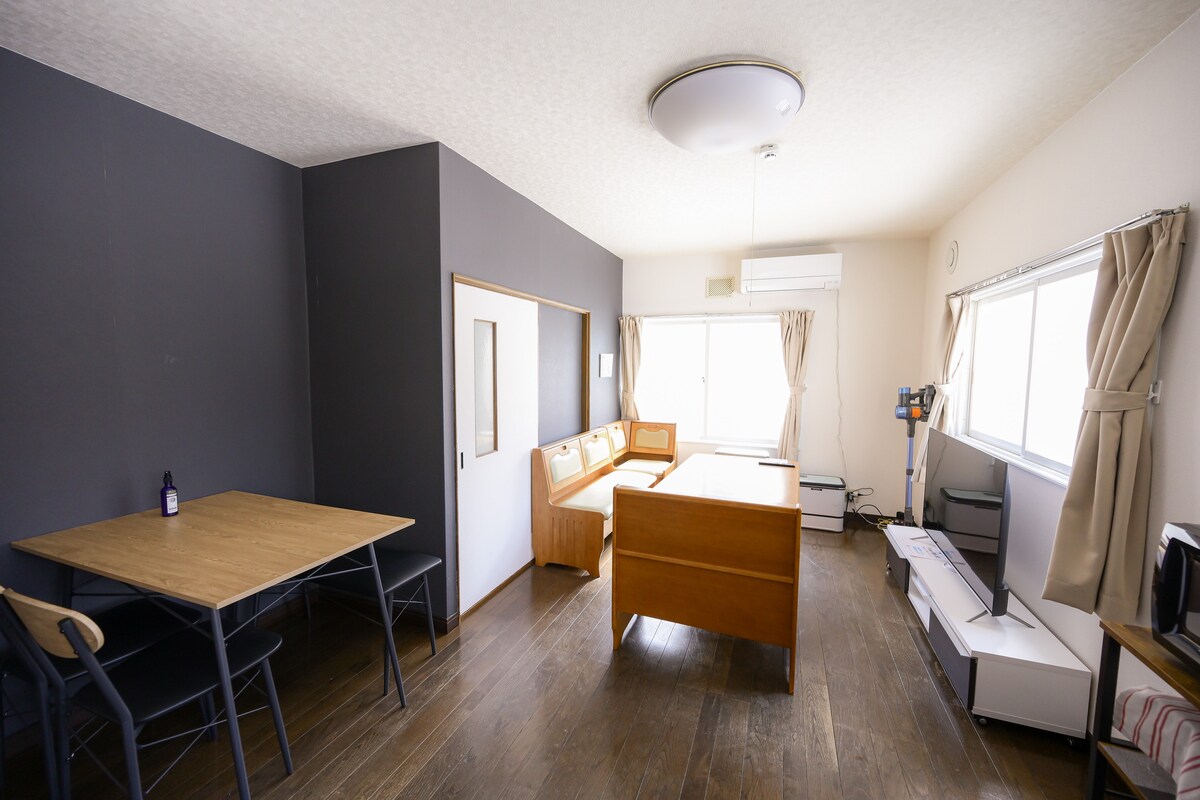 There are 2 bedrooms with 2 semi-double beds (king size), and 2 bedrooms with futons can accommodate up to 9 adults.Infants are free, and the 46 ㎡ kitchen and living space are equipped with a full kitchen, 3 IH, and a large refrigerator.A large 75 inch 4k TV.High speed internet, ping pong table (full size), working space, large washing machine.Free parking is available for 2-3 cars, so it is ideal for groups.Perfect for a family trip of 3 families.There is also a babyguard, baby chair, and crib.