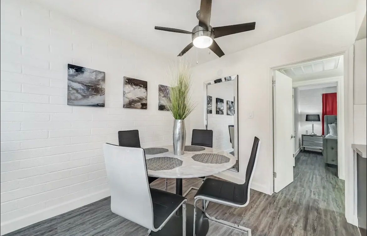 20 miles from Copper Square in Scottsdale, Exquisite Home-Walk Score 81-Shopping District-King Bed-Parking -G3021 provides accommodations with access to a fitness room. This apartment offers air-conditioned accommodations with a patio. There's an outdoor fireplace and guests have access to free Wifi, free private parking, and an electric vehicle charging station. Offering a balcony and quiet street views, the spacious apartment includes 2 bedrooms, a living room, flat-screen TV, an equipped kitchen, and 2 bathrooms with a walk-in shower and a bath. Towels and bed linen are featured in the apartment. For added privacy, the accommodation has a private entrance and is protected by full-day security. For those times when you'd rather not eat out, you can cook on the barbecue. You can play billiards at the apartment. A water park can be found at Exquisite Home-Walk Score 81-Shopping District-King Bed-Parking -G3021, along with a year-round outdoor pool. Phoenix Convention Center is 21 miles from the accommodation, while Musical Instrument Museum is 6.2 miles away. Scottsdale Airport is 1.2 miles from the property.