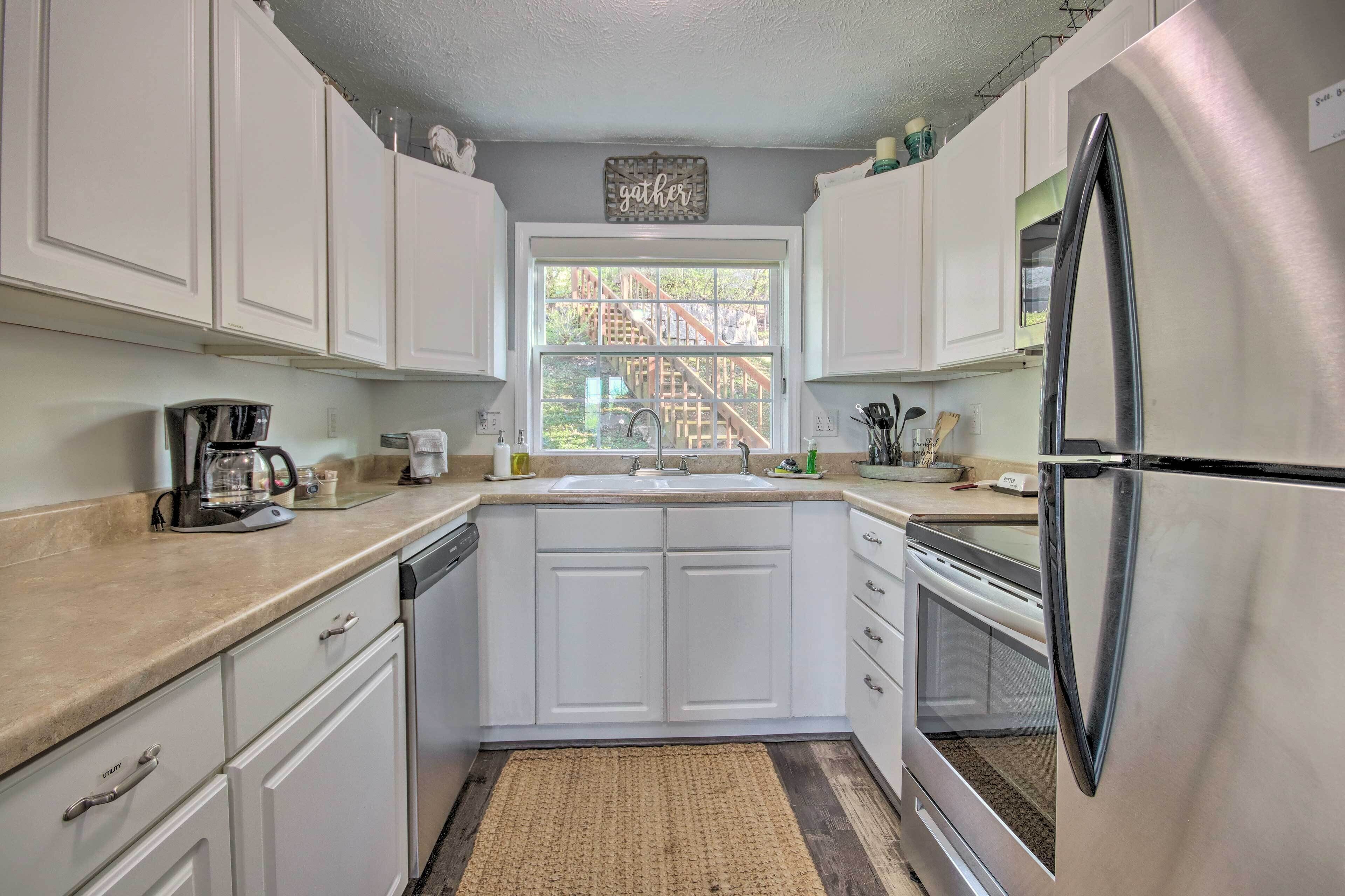 Cozy and private with all the comforts of home. The kitchen is fully stocked and has both a coffee pot and a Keurig.