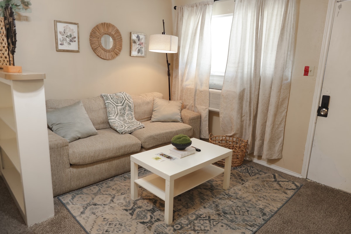 Welcome to your perfect Arlington getaway—just 3 miles from AT&T Stadium and Globe Life Field! This beautifully designed studio apartment is made for your comfort, convenience, and unforgettable experiences. Whether you’re here for a game, a relaxing weekend, or a romantic escape, you’ll feel right at home with premium touches and plenty of options to customize your stay.