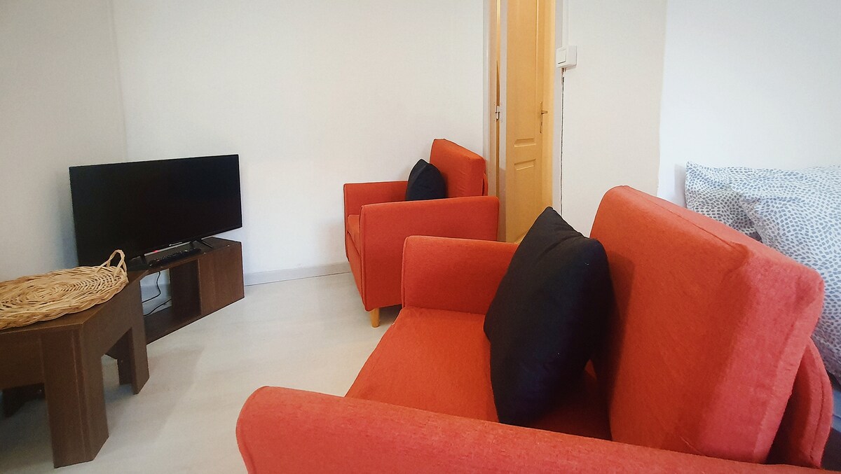 - A living room of 15 m² with TV (netflix subscription), sofa bed, armchair and dining area.
