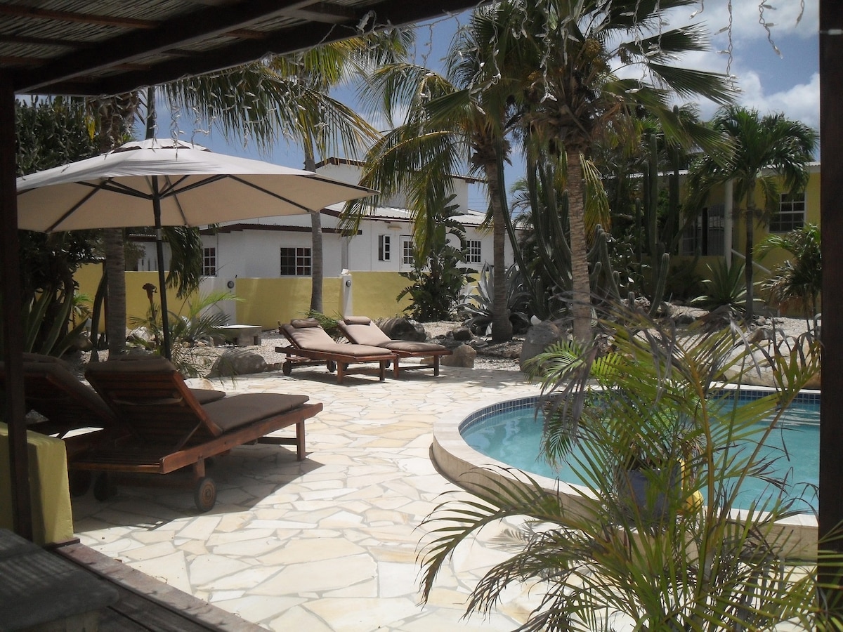 Renting 1 bedroom apartment (& bathroom) with private entrance (U will access the room from outside the main house). Cooking facilities & access to the pool (24/7). Free Netflex, wifi, jug and beach chairs. One minute by car to the harbour and centrum (& central bus station). Three minutes by car to eagle beach and the big supermarkets. It's a safe neighbourhood if you feel like walking to the centrum, wendy' or nearest beach: Bushiri beach. Very quiet place.