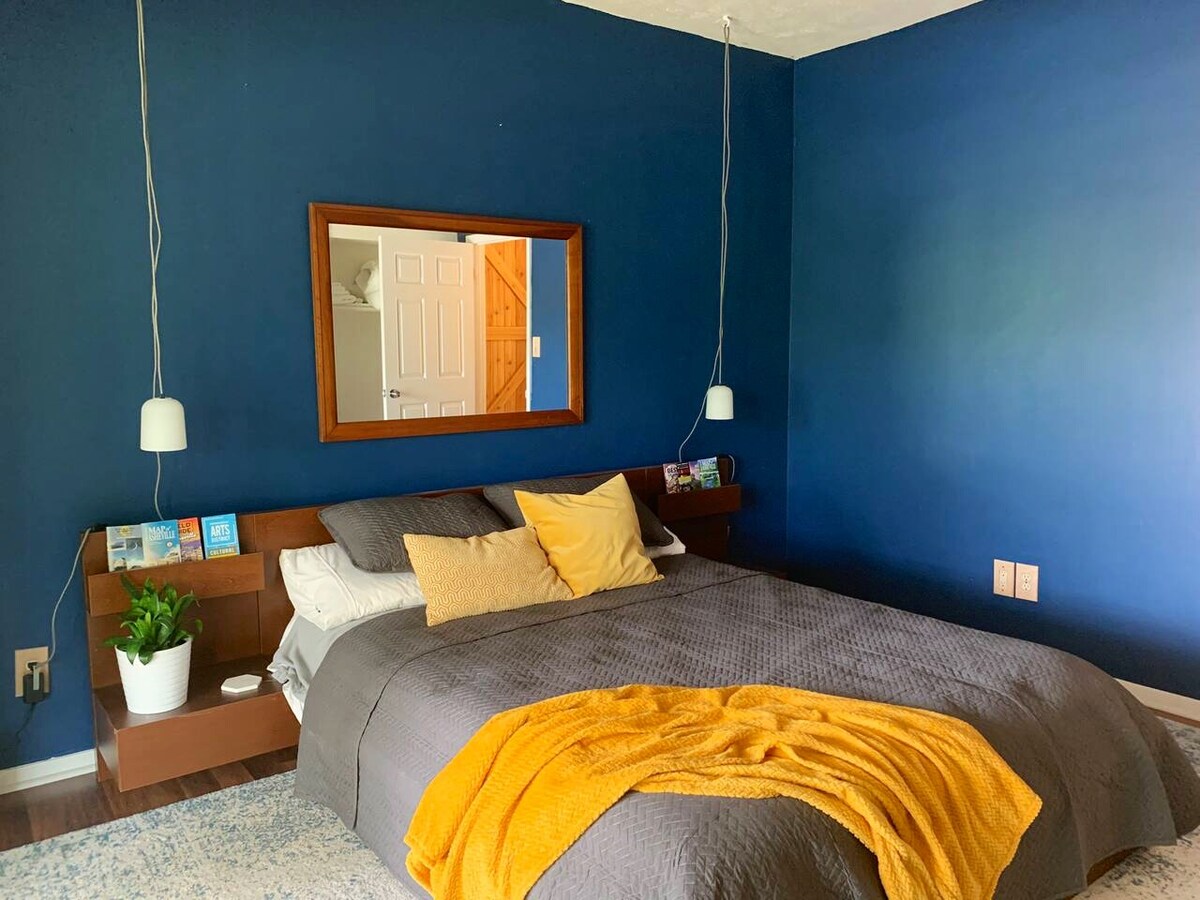 Welcome to Asheville! Enjoy our quiet guest suite in west Asheville. The suite includes a private entrance, queen bed, smart tv and wifi, mini-fridge, microwave and coffee maker, a spacious renovated bathroom, and off-street parking. And we have brand new solar panels to offset your carbon impact! A 16-inch twin air mattress and bedding is available upon request. We are located a short drive or Lyft/Uber ride from West Asheville, the River Arts District and downtown Asheville.
