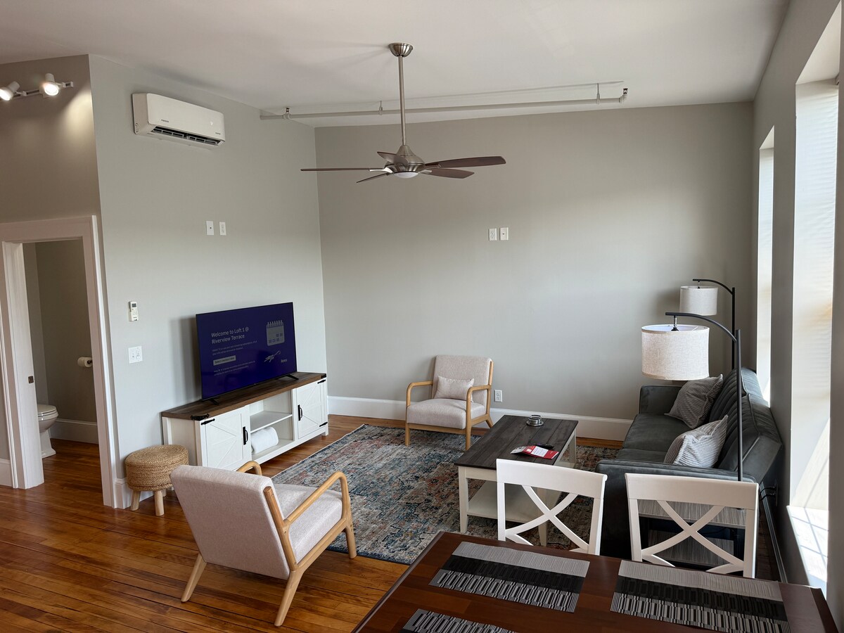 If you're looking for a one-bedroom unit see our upstairs unit "High-End Apartment in Downtown Hallowell". If you need more space the entire building can be rented which will sleep 10.
