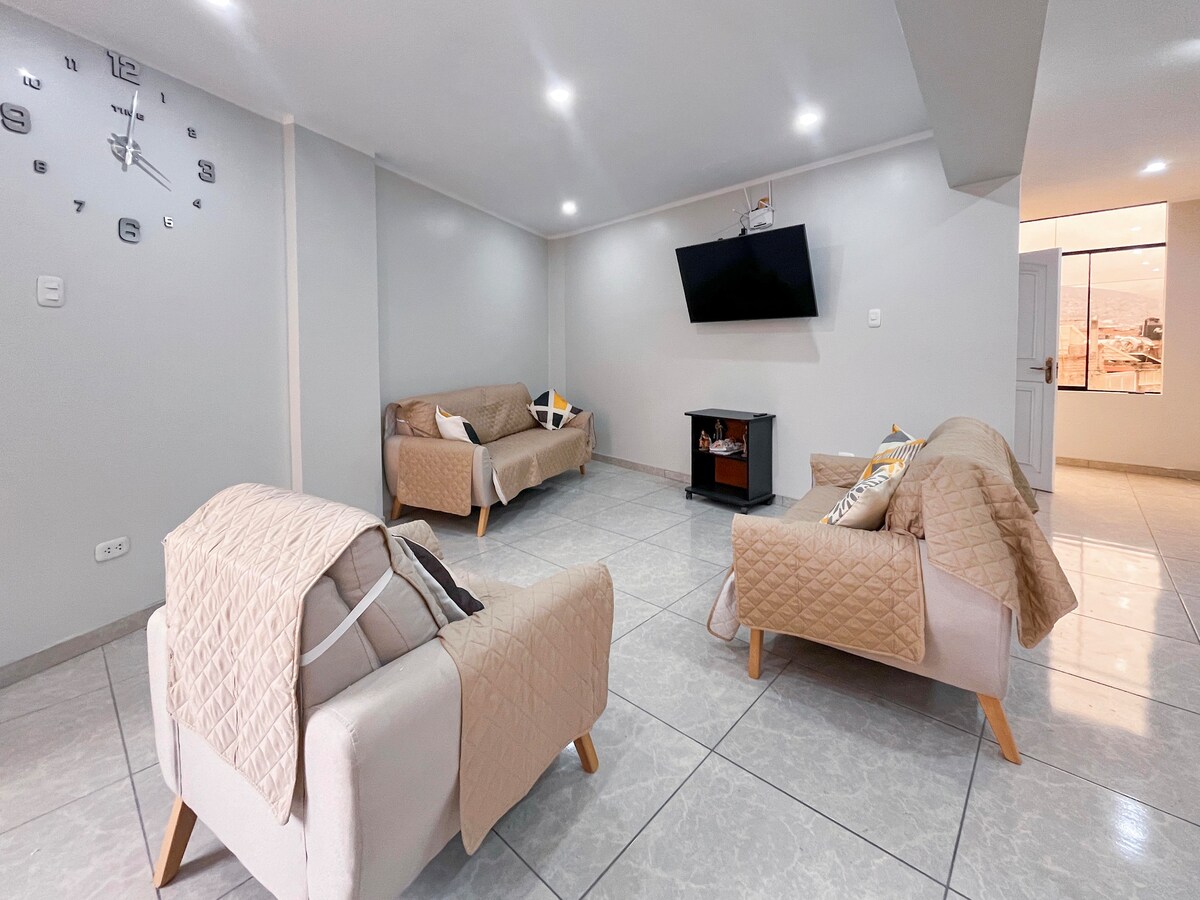 The apartment is very cozy, furnished, with soft beds and cotton sheets, extremely clean, Ideal for families with children and older adults; It is very well located 10 minutes from the Plaza de Armas, 5 minutes from the ground terminal, 20 minutes from the airport, enjoys a quiet, safe residential area, close to shops,pharmacies, markets and public and private transport.
