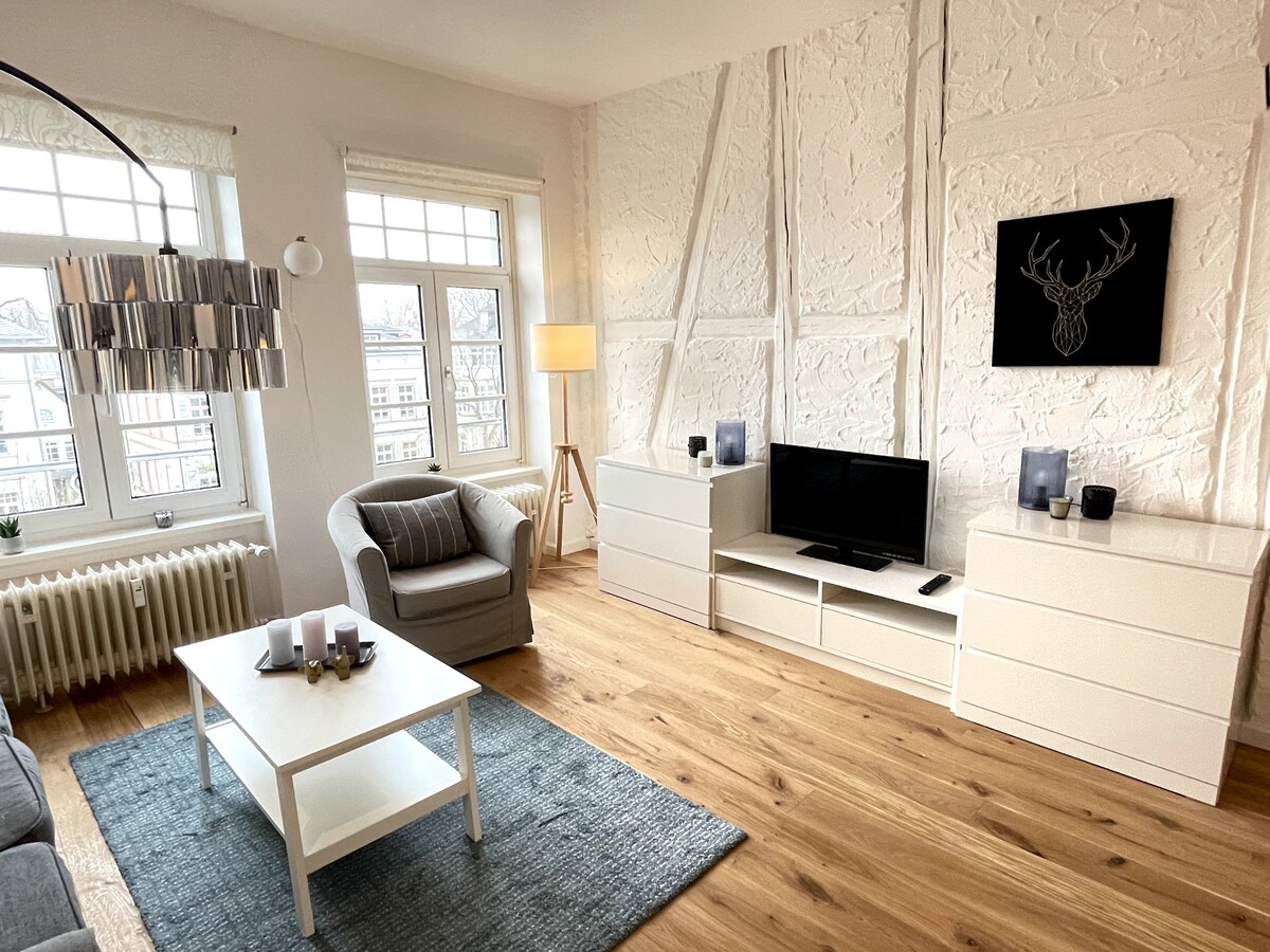 Enjoy the simple life in this quiet and centrally located property. The studio is located in the middle of Bad Homburg in the lively old town directly on the pedestrian zone. Car is not necessary here. The newly renovated and exclusive furnished studio offers everything you need to live. Full kitchen with seating area, spacious bathroom, living area with sleeping coach and in addition a very comfortable bed.