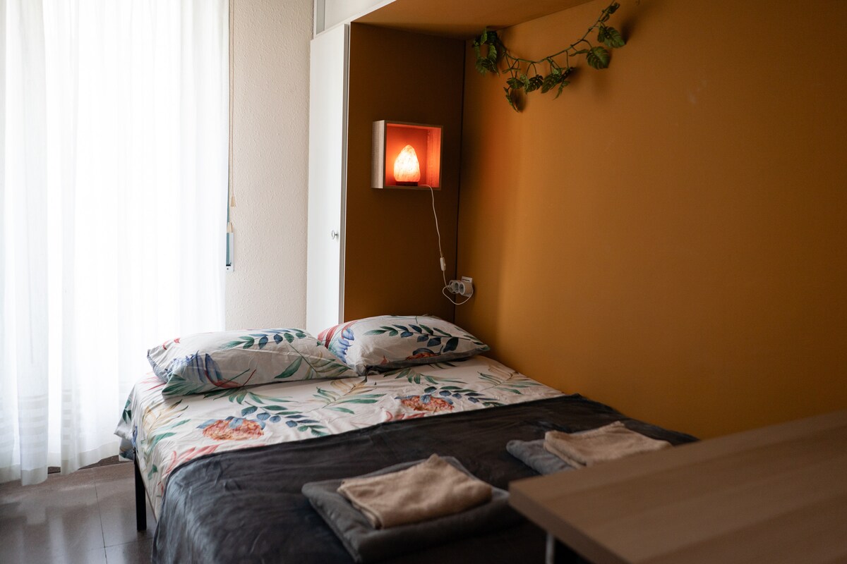 Room with window, 1 bed, fan and wifi well located near the beach and Besos river and downtown Barcelona, supermarkets, public transport, gym and Magic shopping centers.