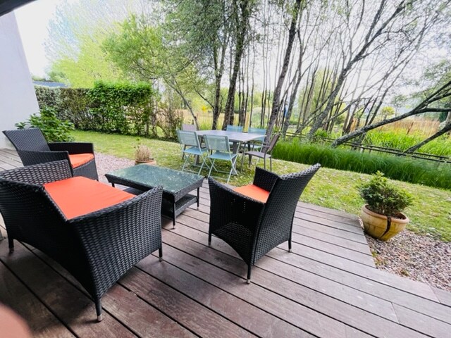 large landscaped wooden terrace. secure private parking; seaside and 18-hole golf course. departure from the coastal path. beach 10 mins; ideal golfer. hiker and lovers sea activities. rare setting.