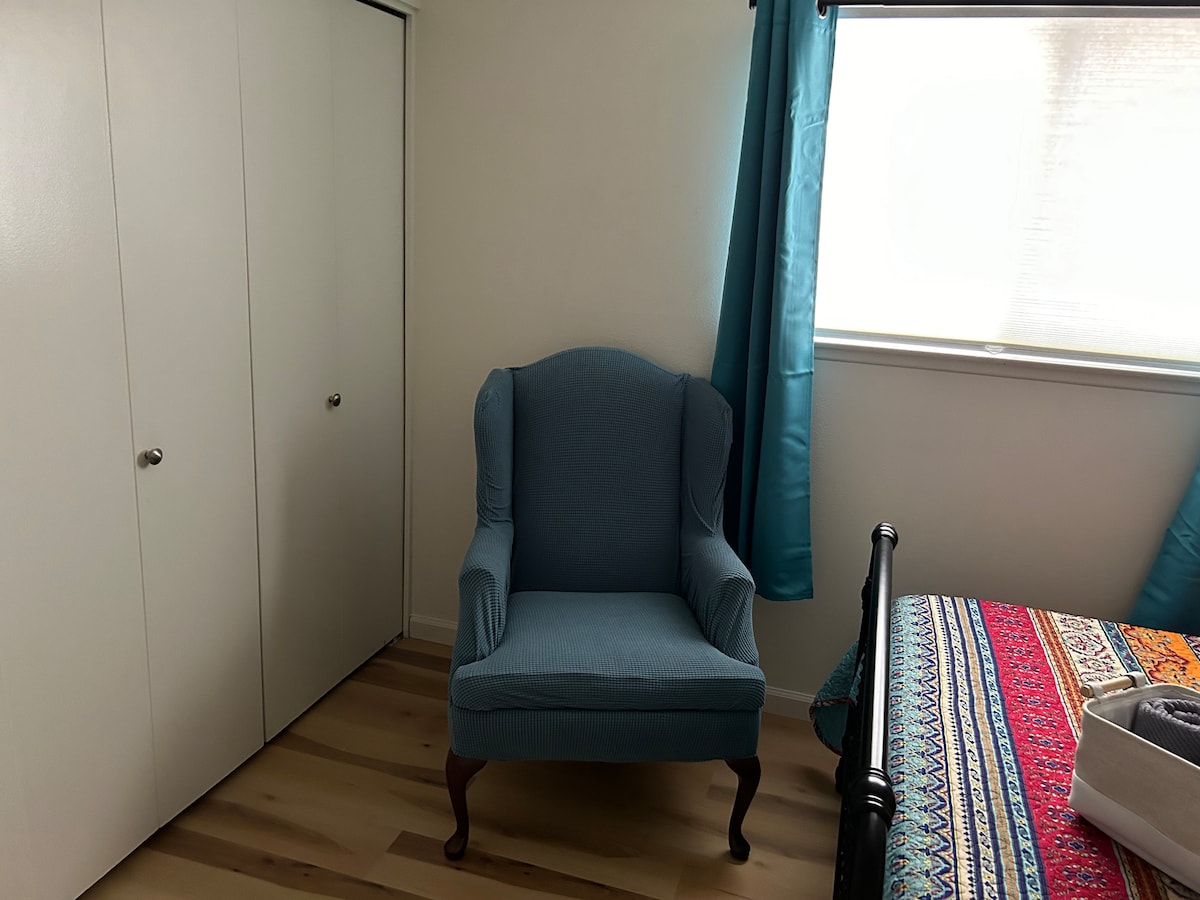 Both bedrooms have Queen size beds and a dresser for storing clothes. A hamper and hangers are provided for your use. The bathroom is equipped with shampoo, conditioner, body soap and bath towels. The laundry is in the hallway area with a modern washer + dryer.