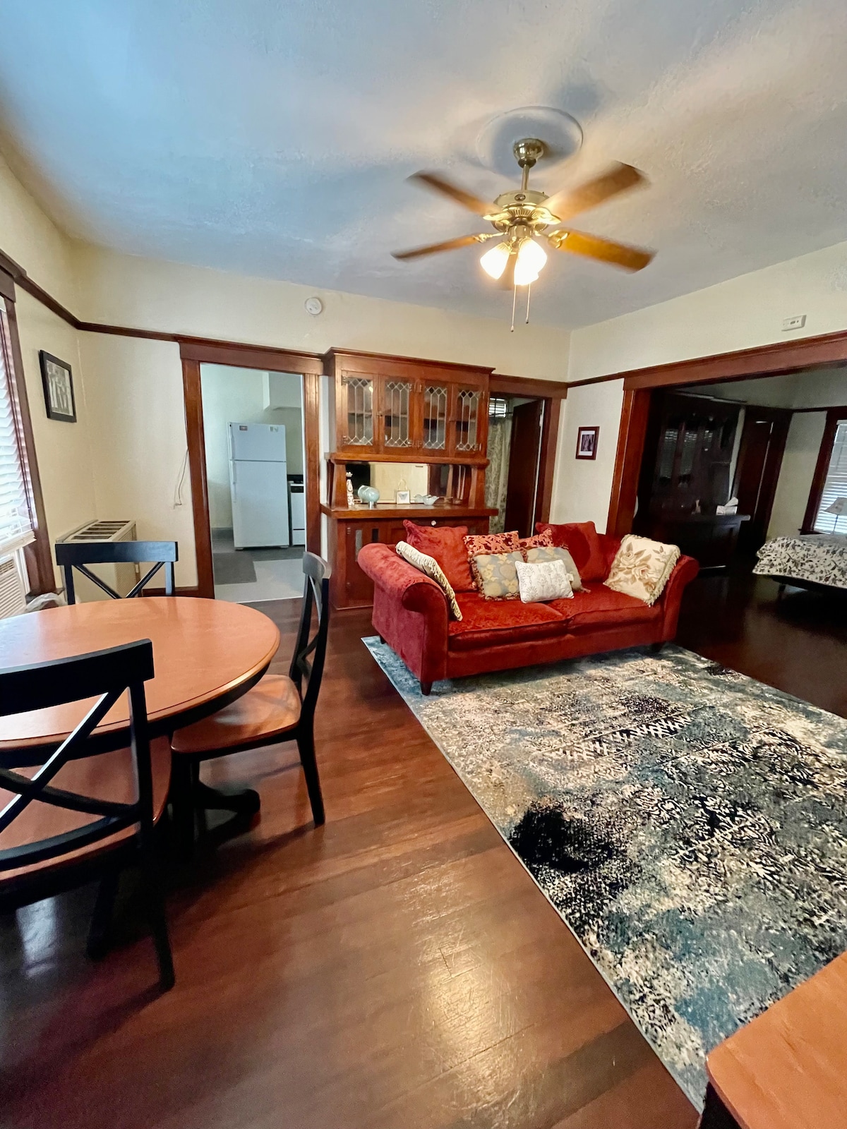 This apartment is spaciously away from all the downtown activities, but close enough to walk if you are up for it. We walk it often and appreciate being far enough away to get there, but away from the activity when we want to keep our distance. The bar and restaurant scene is our opinion the best in town, changing and growing all the time. This apartment was built in 1922. There have been some modification to the floor plan, but it still functions very well and it has been updated to include all necessary functionality. The oak flooring is original. The kitchen has granite and all the bells and whistles. It even has a bidet. This apartment is situated so there is access to the deck with a firepit, outside TV, comfortable seating, and even a putting green if you feel like moving around a bit. We offer one private bedroom with door that closes. The other bed is in the sunroom and is open to the kitchen. There is a sleep sofa in the living room. The bathroom has an old claw foot tub what is a great soak, as well as shower.