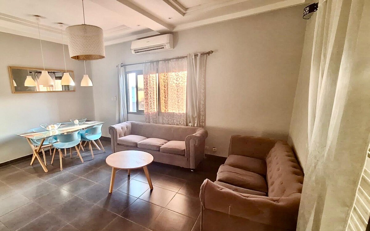 Relax in this quiet and stylish space. Welcome to our one bedroom apartment with living room, kitchen and bathroom. Ideal for couples or individual guests, our space offers all the comforts you need for a pleasant stay in Sebeninkoro. Enjoy a comfy bed, living room with TV, full kitchen, and modern bathroom. Close to aci 2000, our apartment is perfect for discovering Bamako. Great! Looking forward to having you stay with us!
