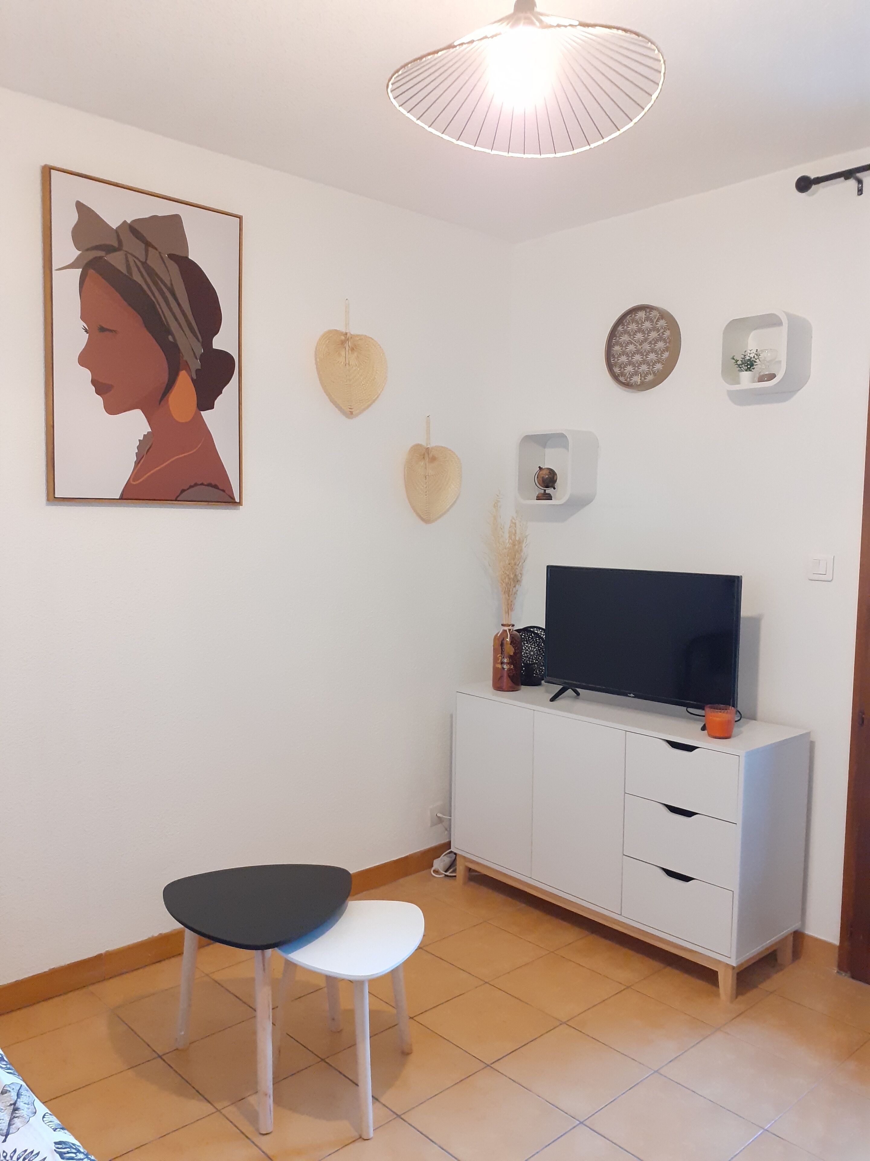 The accommodation is 40 m2 (plus 15 m2 terrace) and is composed of a living room. Living room / SAM equipped with a drawer sofa bed.