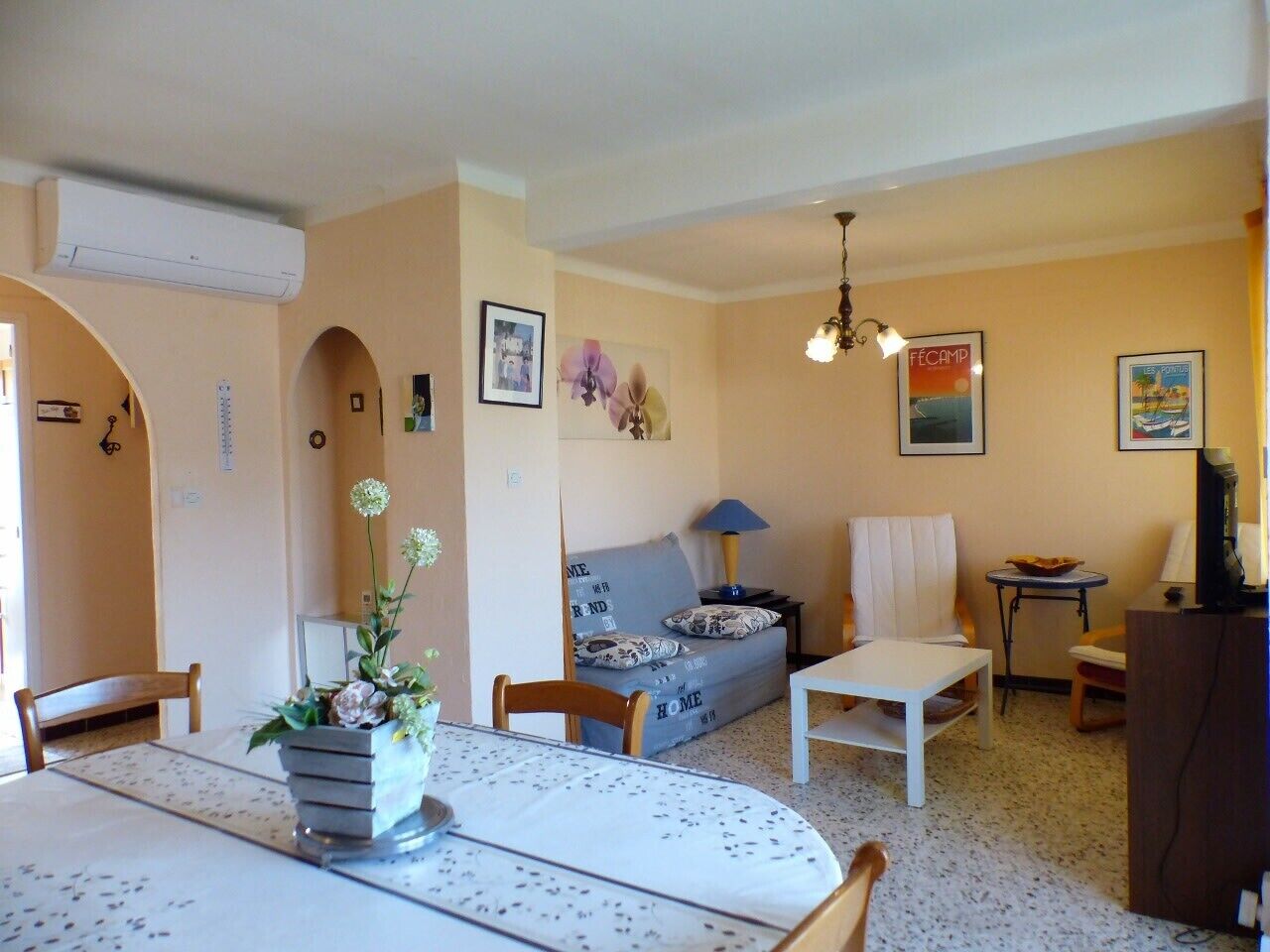 Well-equipped 2-room apartment with a large 16-square-meter terrace "with a small sea view", not overlooked, located 100 meters from Lecques beach.